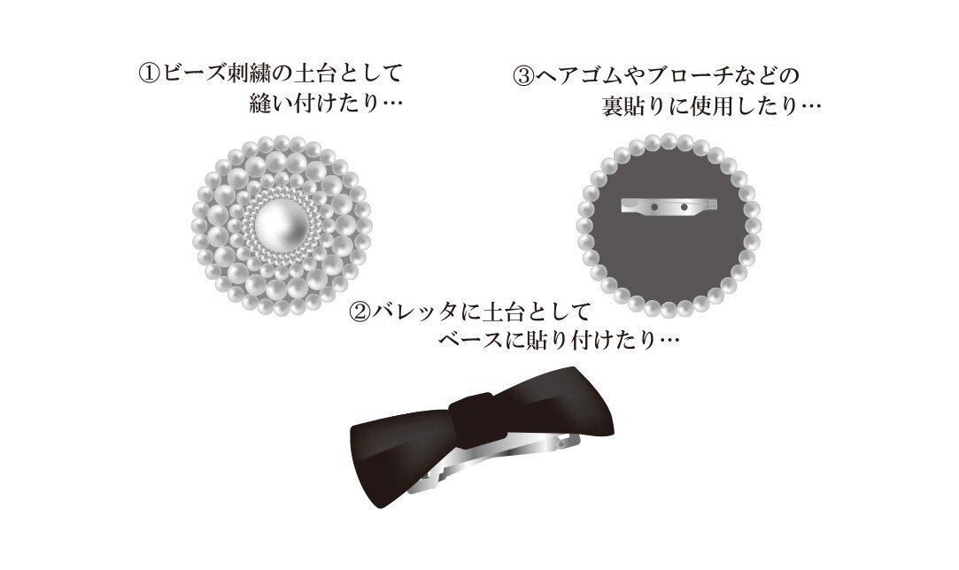 ビーズ刺繍の土台、ヘアゴムやブローチなどの裏貼り、バレッタの土台としてベースに貼り付けたり幅広くご使用いただけます