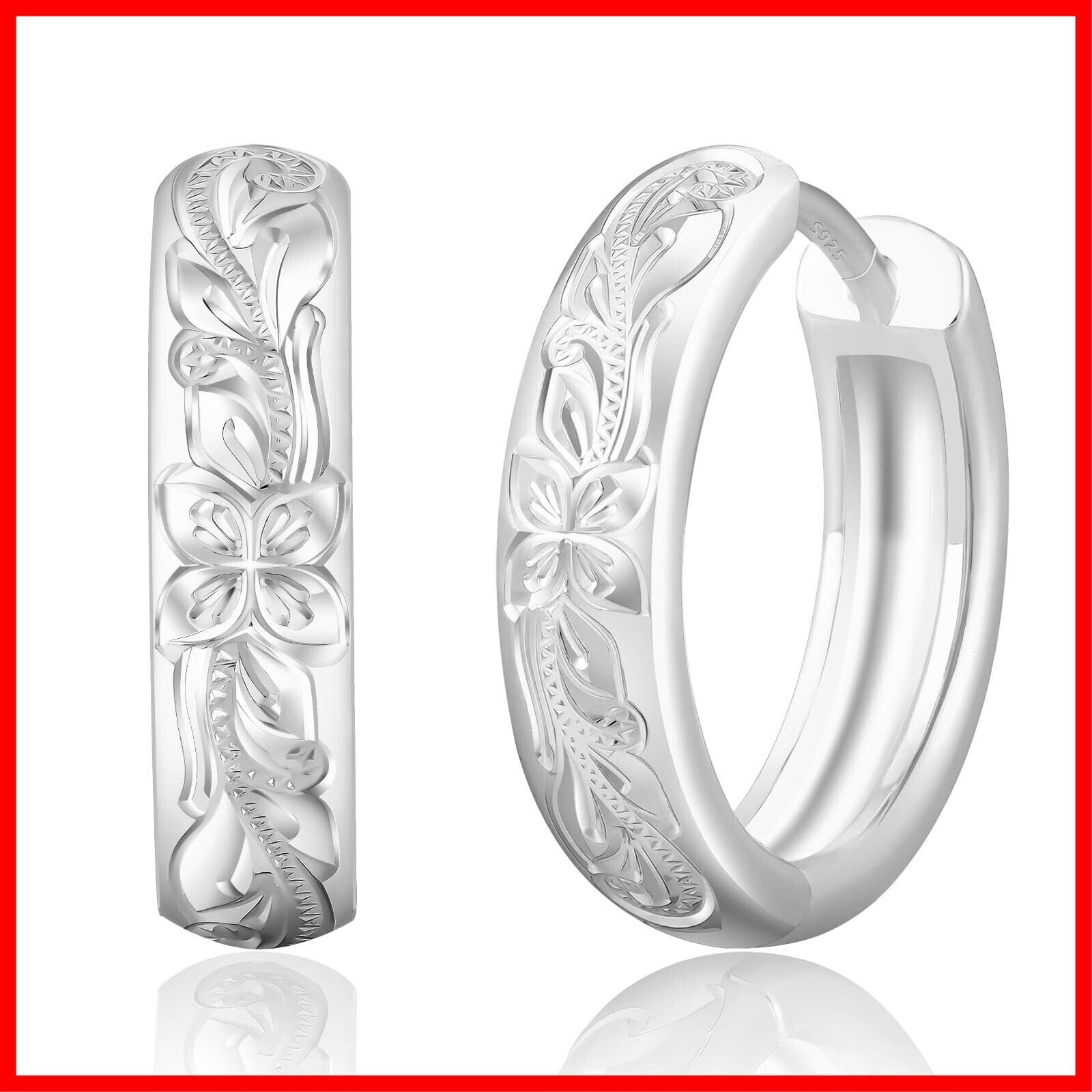 【ハワイアンジュエリー】耳元を華やかに彩るハワイアンジュエリーのフープピアス。安価なステンレス製品とは異なり、まるで手彫りのような繊細な彫刻が施されています。外径15mm・幅3.5mmの程よい大きさと、シンプルなデザインのため、男女年代問わずお使い頂けます。