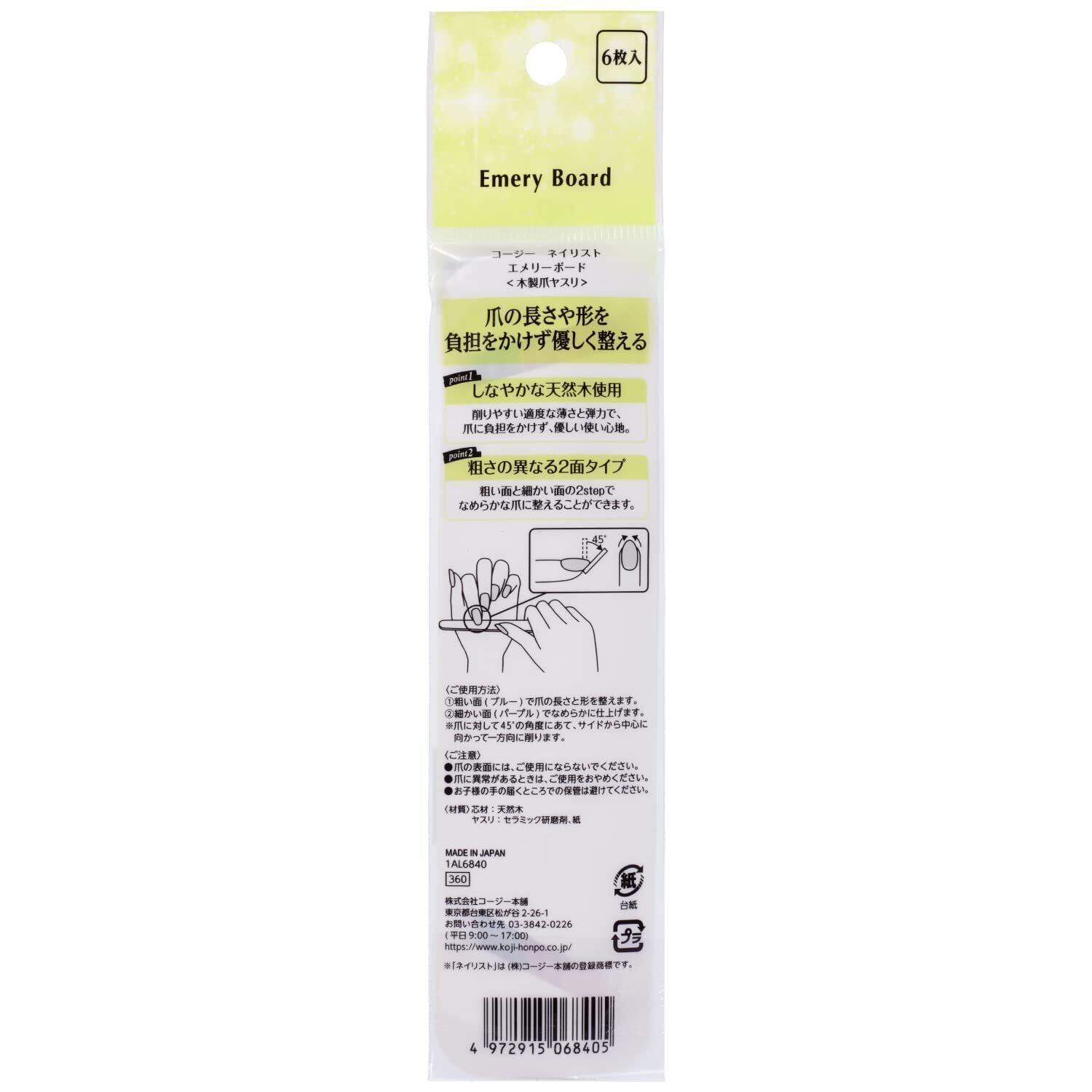 コージー本舗 ネイリスト エメリーボード 6枚入 爪やすり
