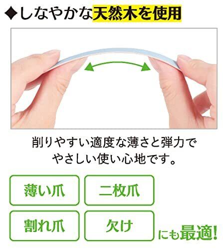 長さや形を美しく整える木製爪やすり。軽い力で優しく削れる天然木使用。