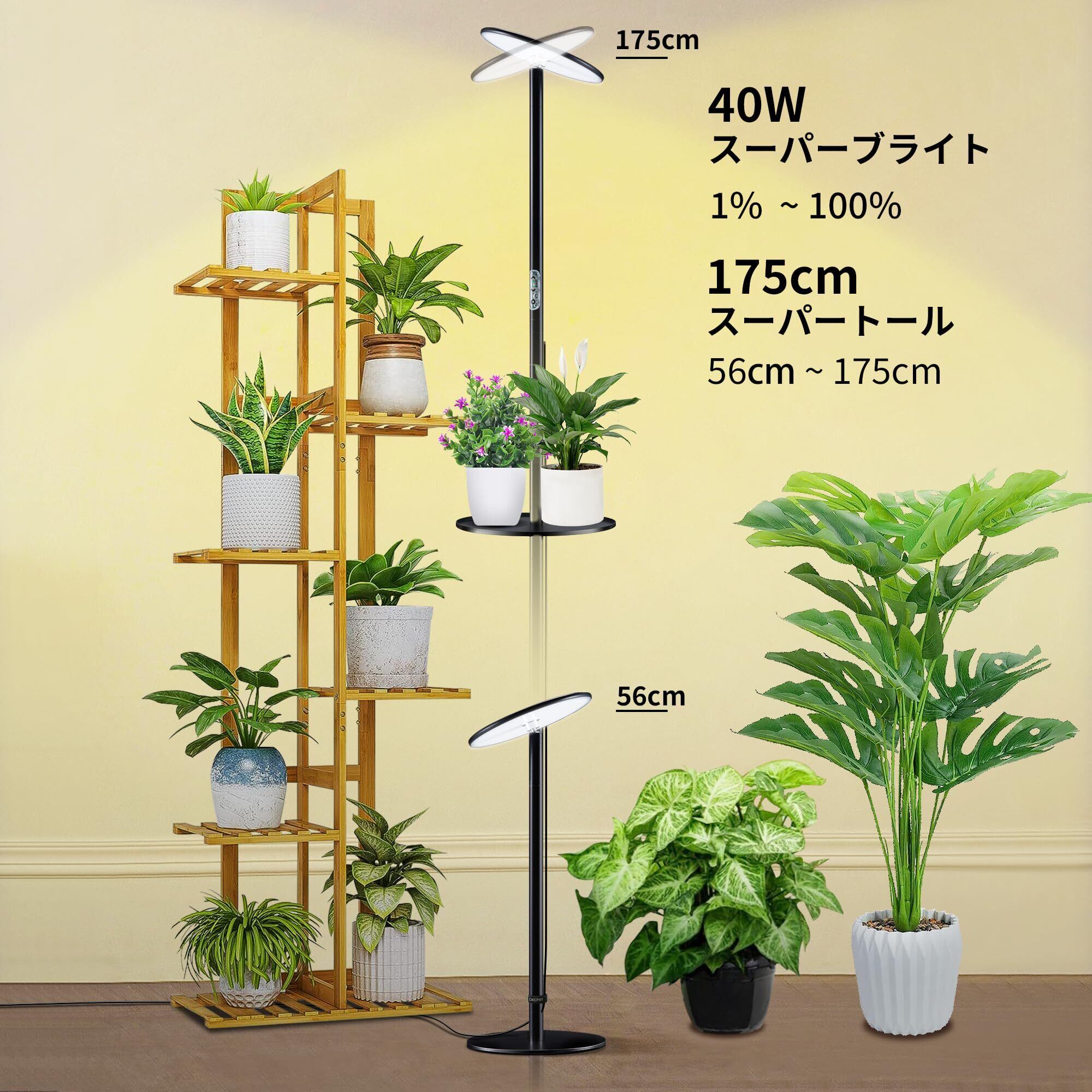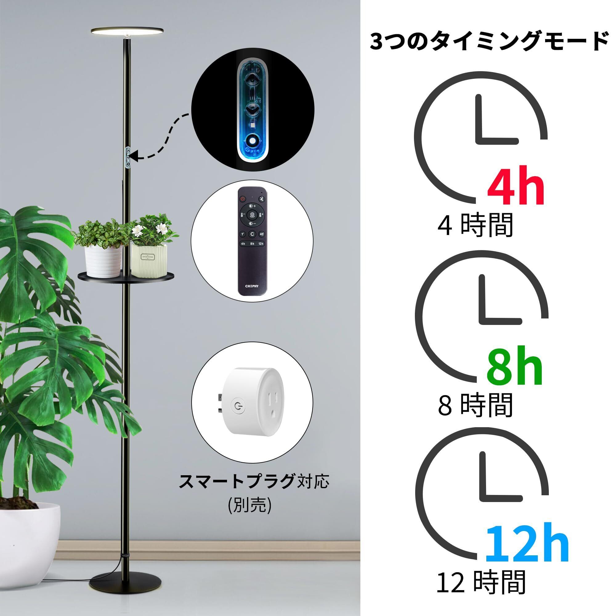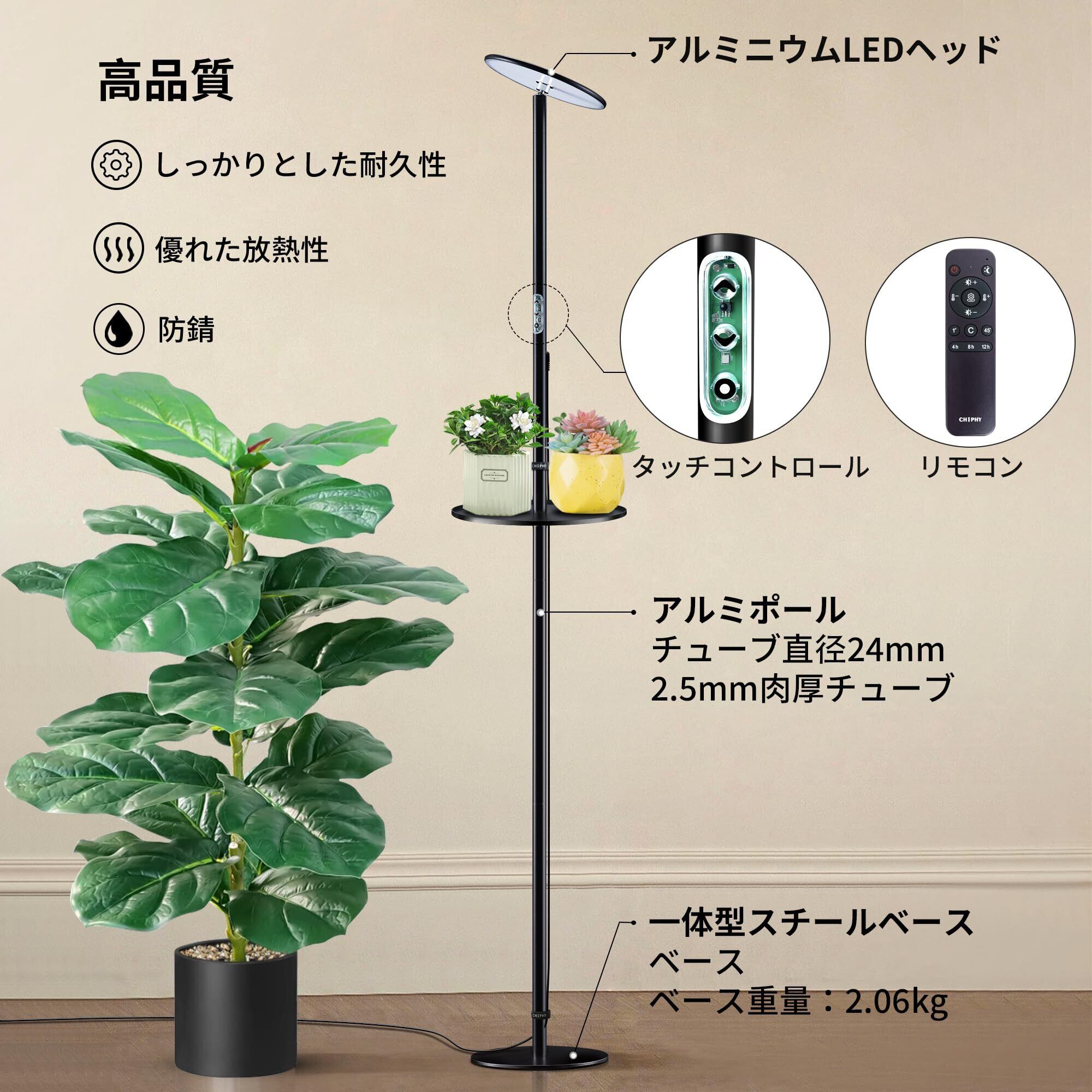 chiphy 植物育成ライト植物成長ライトled 室内植物栽培 高さ調節可能 175cm 屋内園芸 水生植物栽培 大/小型植物用… (175cm(2300K-6500K、トレイ&リモコン付き)) | hananoki