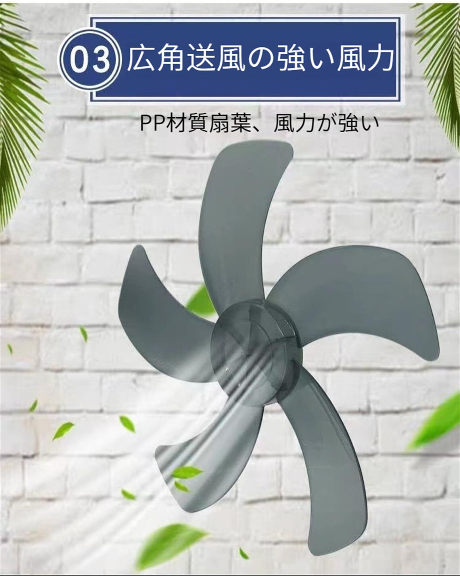5枚羽根:5枚の羽根構造で、風力を効率的に送ることができます。強力な風を送り、涼しさを実感できます。
