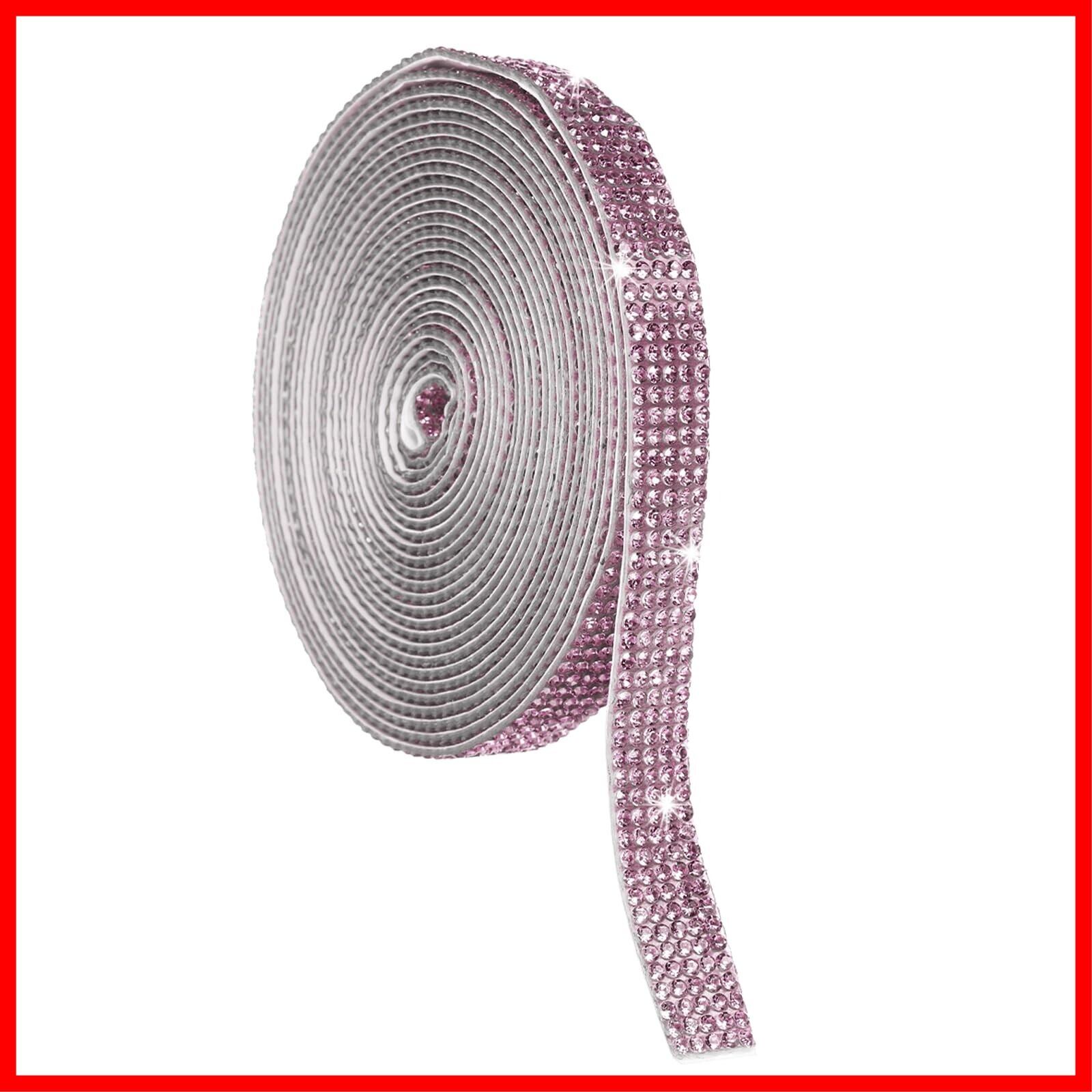 uxcell 水晶ラインストーンリボンロール 5列 4ヤード自己粘着性水晶ストリップ アートクラフトウェディング誕生日装飾用ラインストーンステッカー ライトピンク