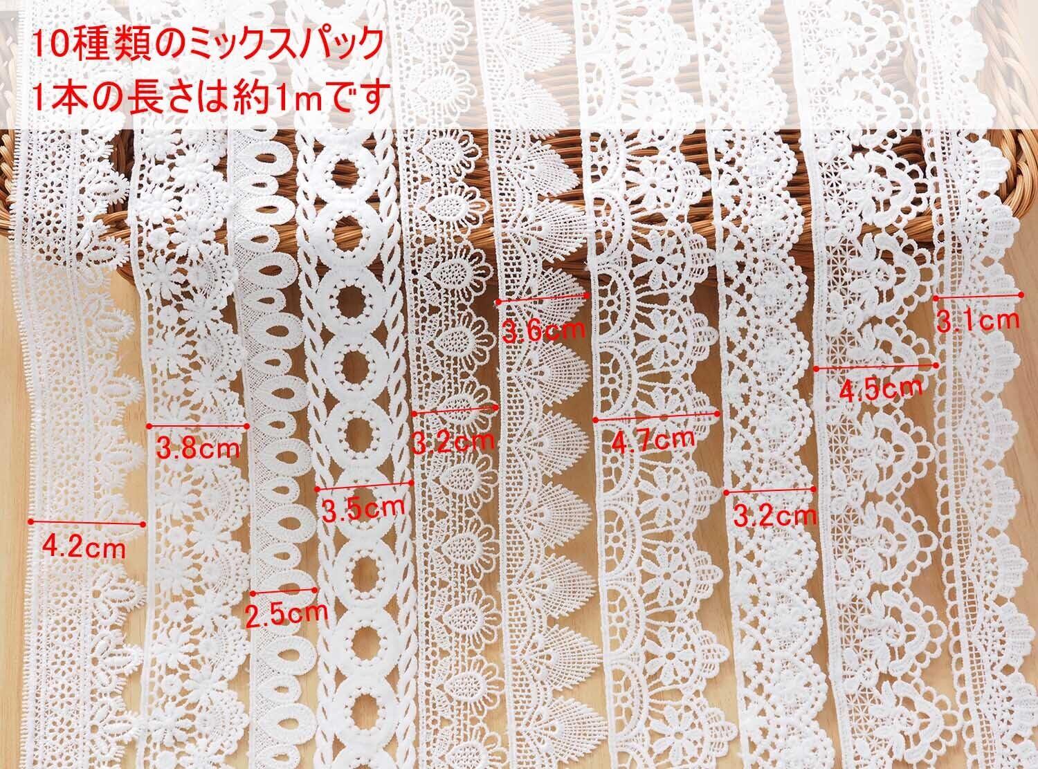 sempiterno 10m ミニ花柄レース生地 ミルクシルク髪飾り刺繍レース シングル長さ約1m DIY補助材料 誕生日 クリスマス ギフト 装飾材料 縫製素材 おもちゃの人形の衣類アクセサリー(10タイプアソート・ホワイト)