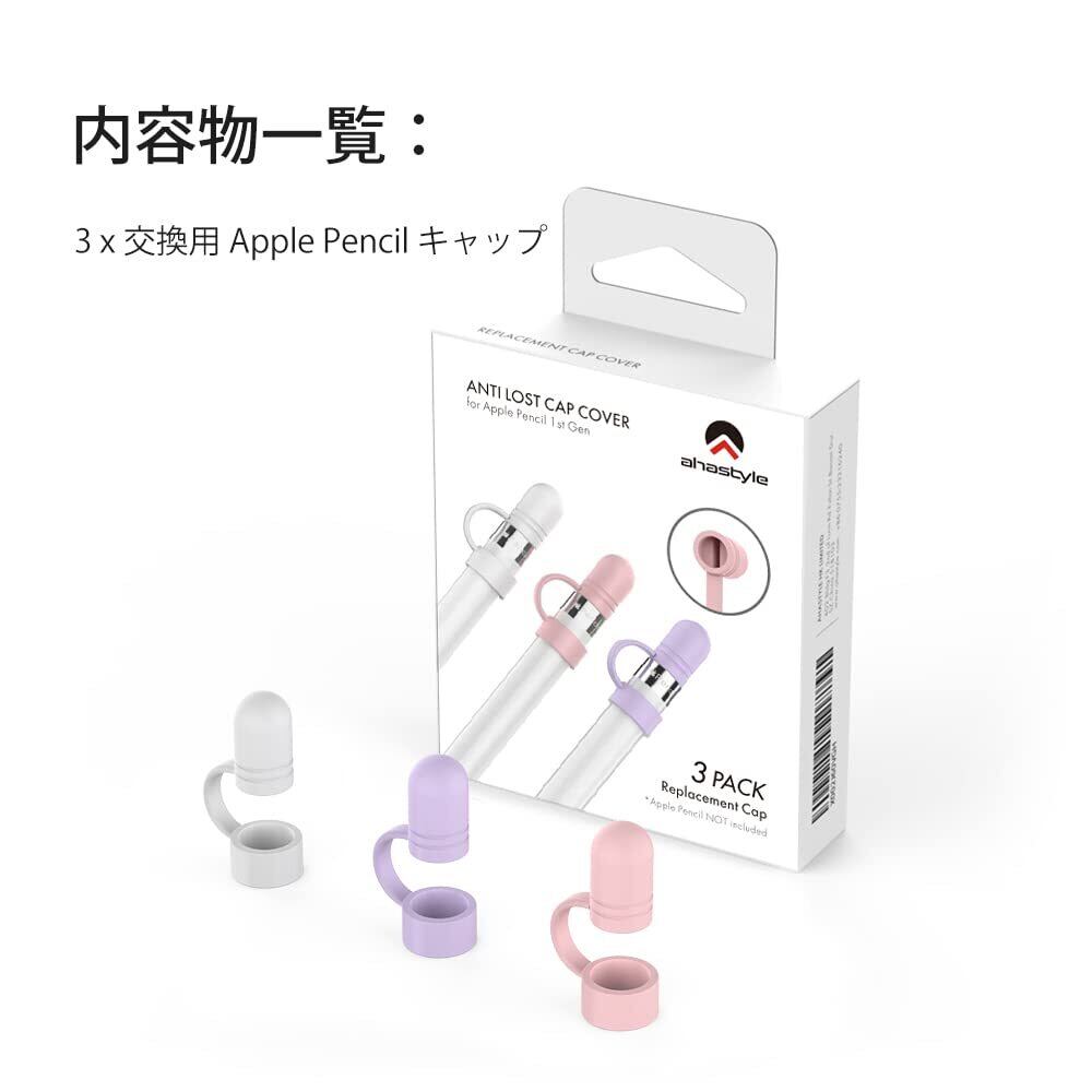 AhaStyle Apple Pencil用シリコンキャップ 交換品 紛失対策 Apple Pencil 第一世代対応 三つ入り (ホワイト、パープル、ピンク)