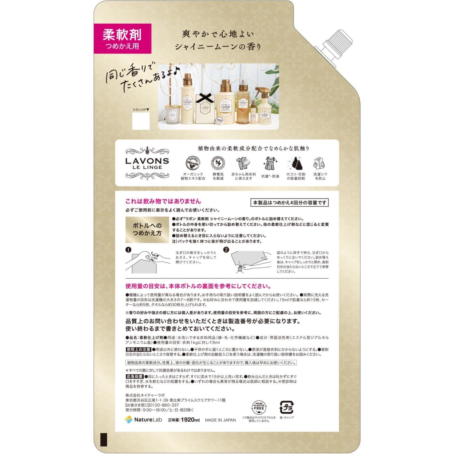 ラボン(Lavons) 柔軟剤 特大 シャイニームーン[フローラルグリーン] 詰め替え 4倍サイズ 1920ml