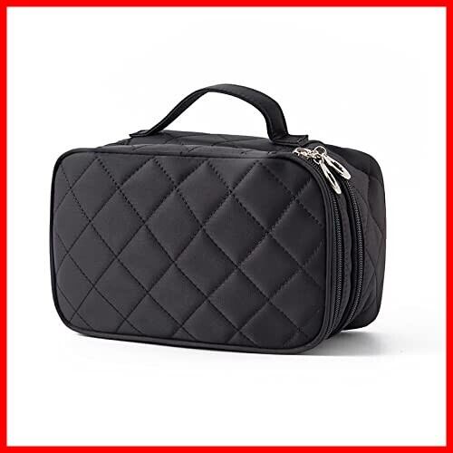 【収納力抜群の化粧ポーチ】二つの大きなポケットに分かれているダブルジッパータイプのメイクポーチ。化粧水、アクセサリー、メイクブラシホルダー、口紅、香水、ネイル用品などの小物収納にも便利です。旅行時や出張時などに充電ケーブルやアダプタ、マウスなどをまとめて収納できます。