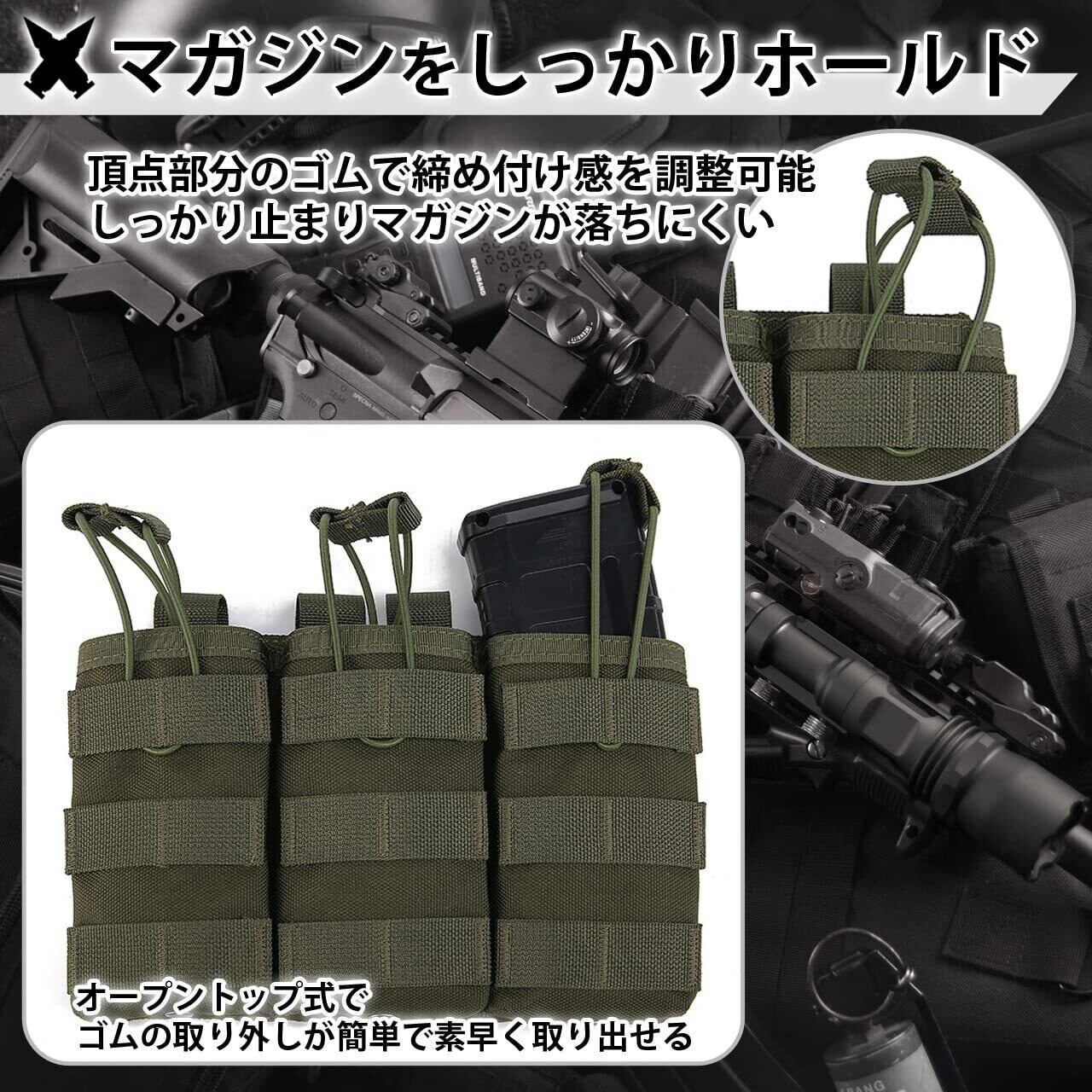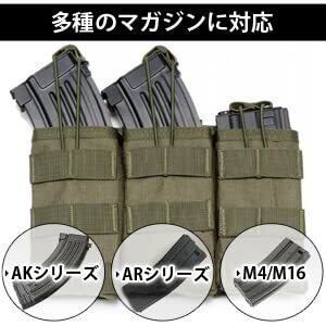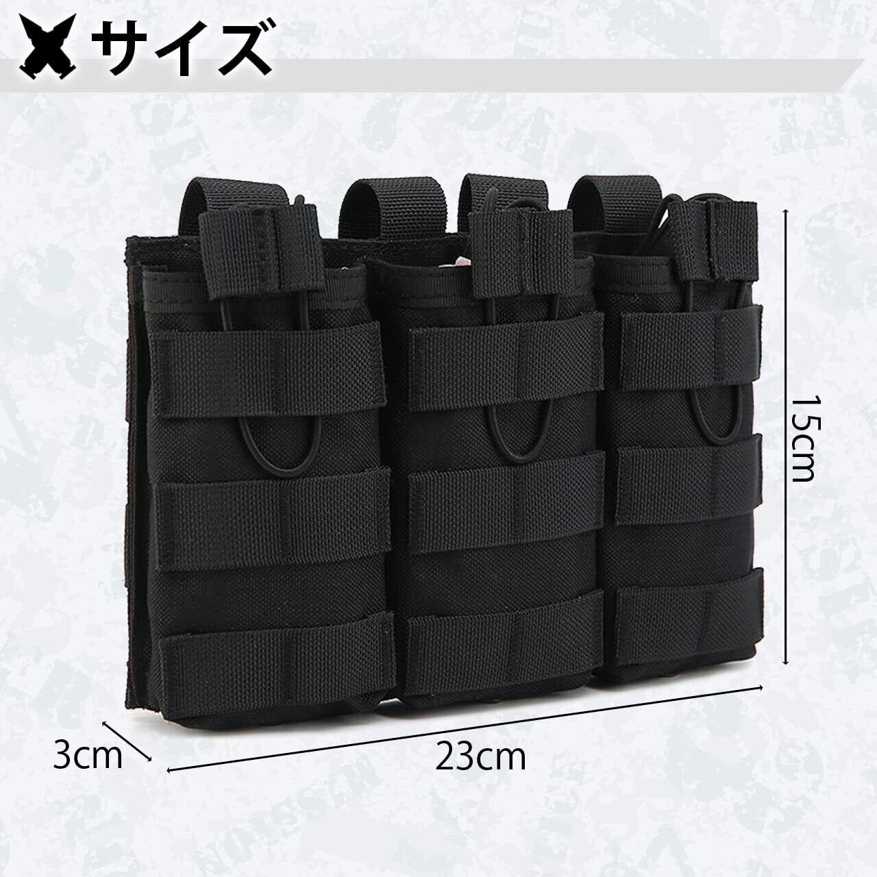 【マガジンポーチ】3連式のマガジンポーチでAK、AR、M4、M16などのマガジンに対応しております。