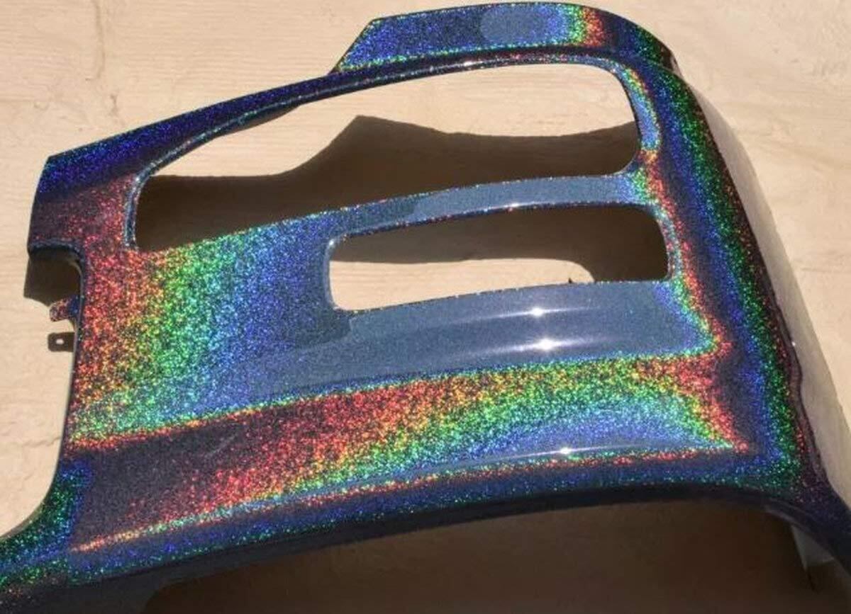 アルミフレーク表面に蒸着した特殊フィルムのプリズム効果によって光の反射を受けて虹のように7色に美しく光り輝くフレーク(ラメ)です。 ウレタンクリヤーをはじめ、さまざまな塗料と混合してカスタム塗装にご利用いただけます。