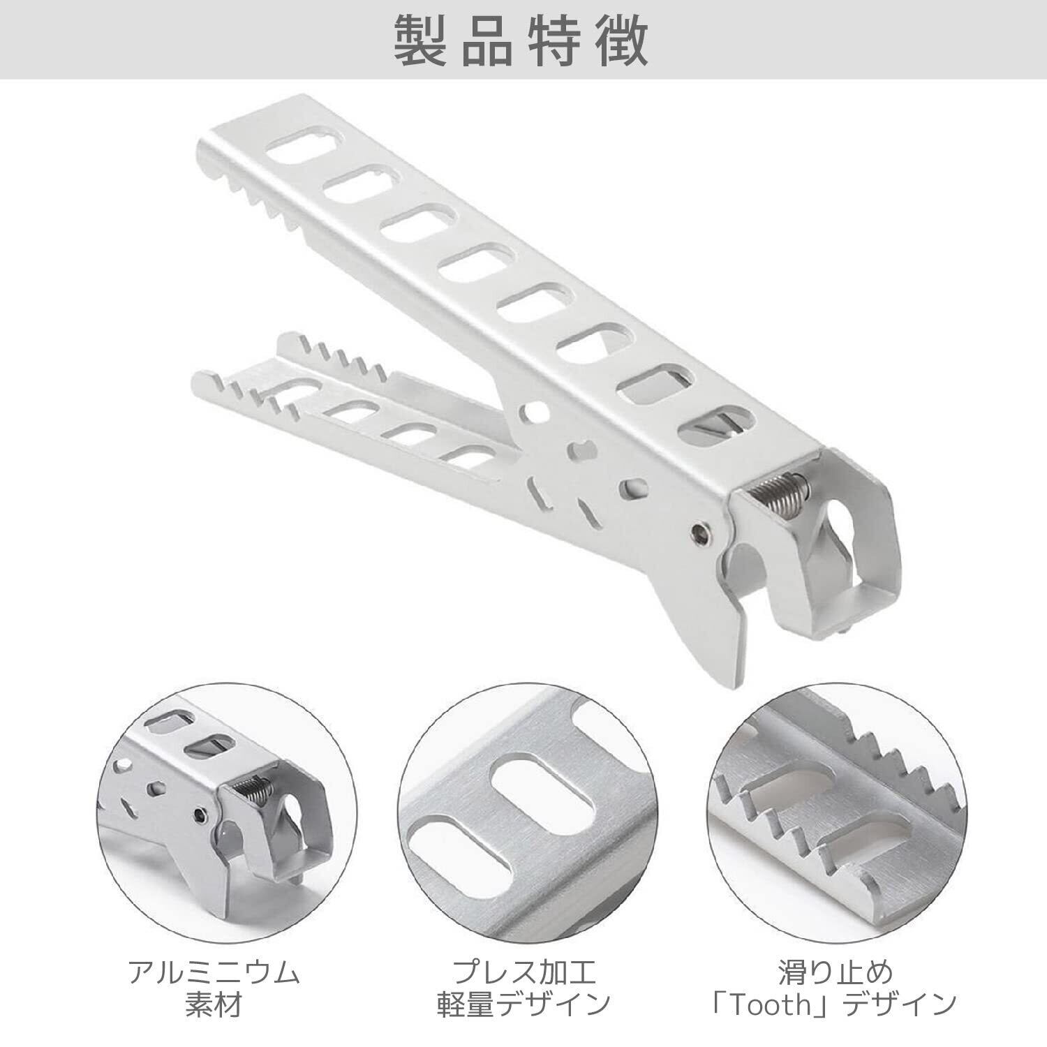 【使い勝手抜群】厚さ1.3㎜のアルミ板金をプレス加工で成形しているので丈夫でたわまない。 挟む部分はギザギザ状の歯でしっかりホールド。上手くつかめない時のストレスから解放!