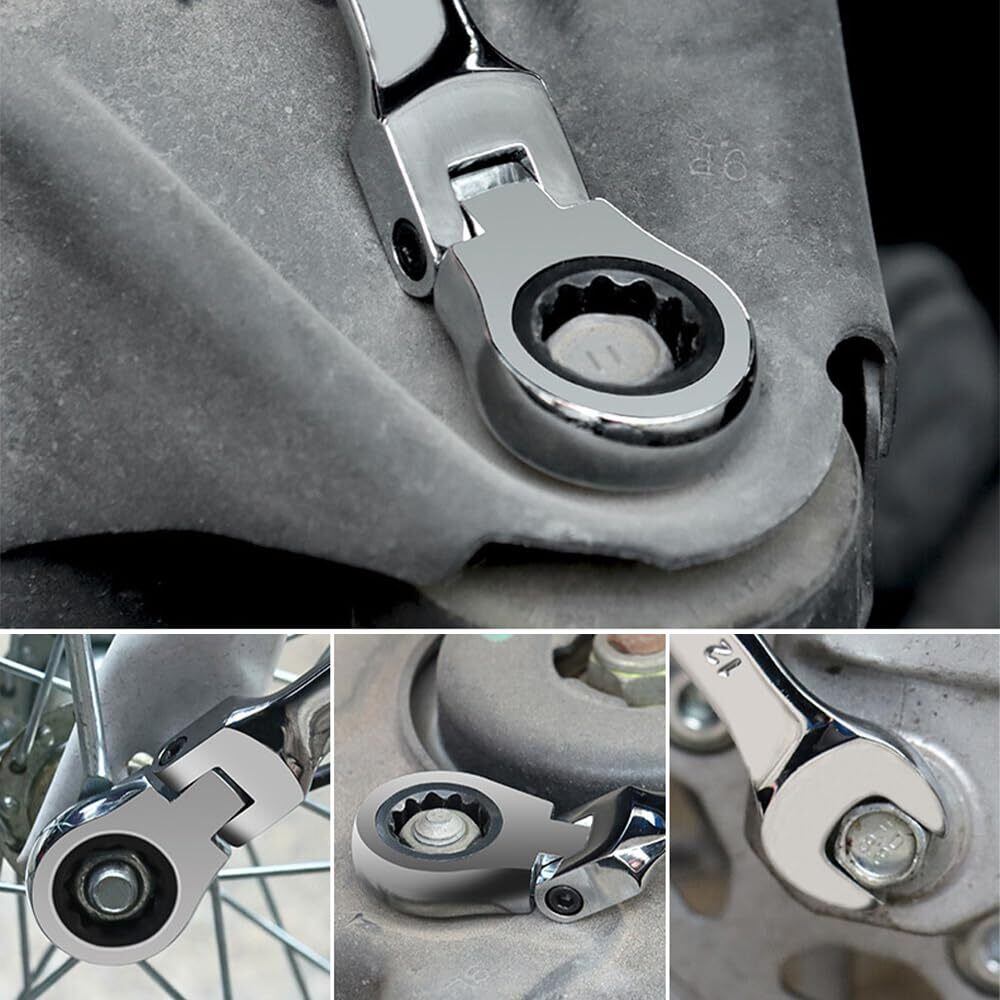 DFsucces フレックスラチェットレンチ 10MM 片口スパナ 72ギヤコンビネーションレンチ 両用ヘッド 首振りラチェットレンチ スパナ 角度調整可能