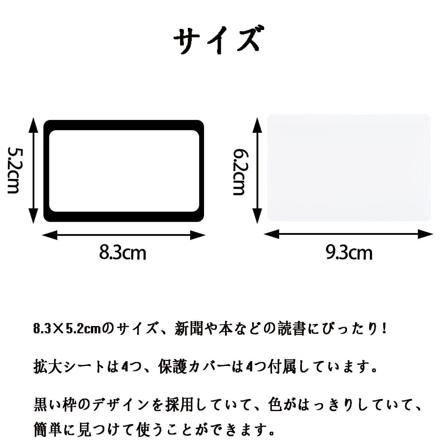 4枚 カード拡大鏡 ページ拡大シート 3倍拡大 虫眼鏡 カードルーペ 超薄型 ページ拡大レンズ 見やすい 軽い 読書ルーペ (8.5×5.5 cm)
