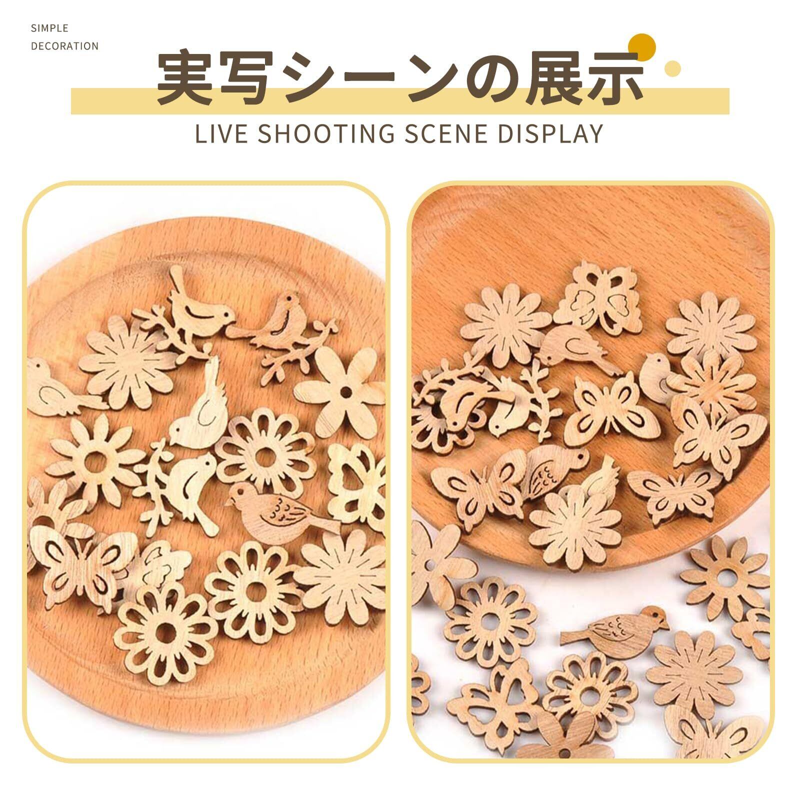 JnTech 約100枚セット 木製チップ 木片 木材チップ 木製スライス 板 蝶 花 葉 鳥 ハート形 木製チープ 木製タグ 木片 絵画可 カード DIY素材 部屋飾り ホーム装飾品 オーナメント 工芸品 手芸材料 手作り素材 クラフト用品 結婚式 パーティー 装飾素材 撮影用 (漫画)