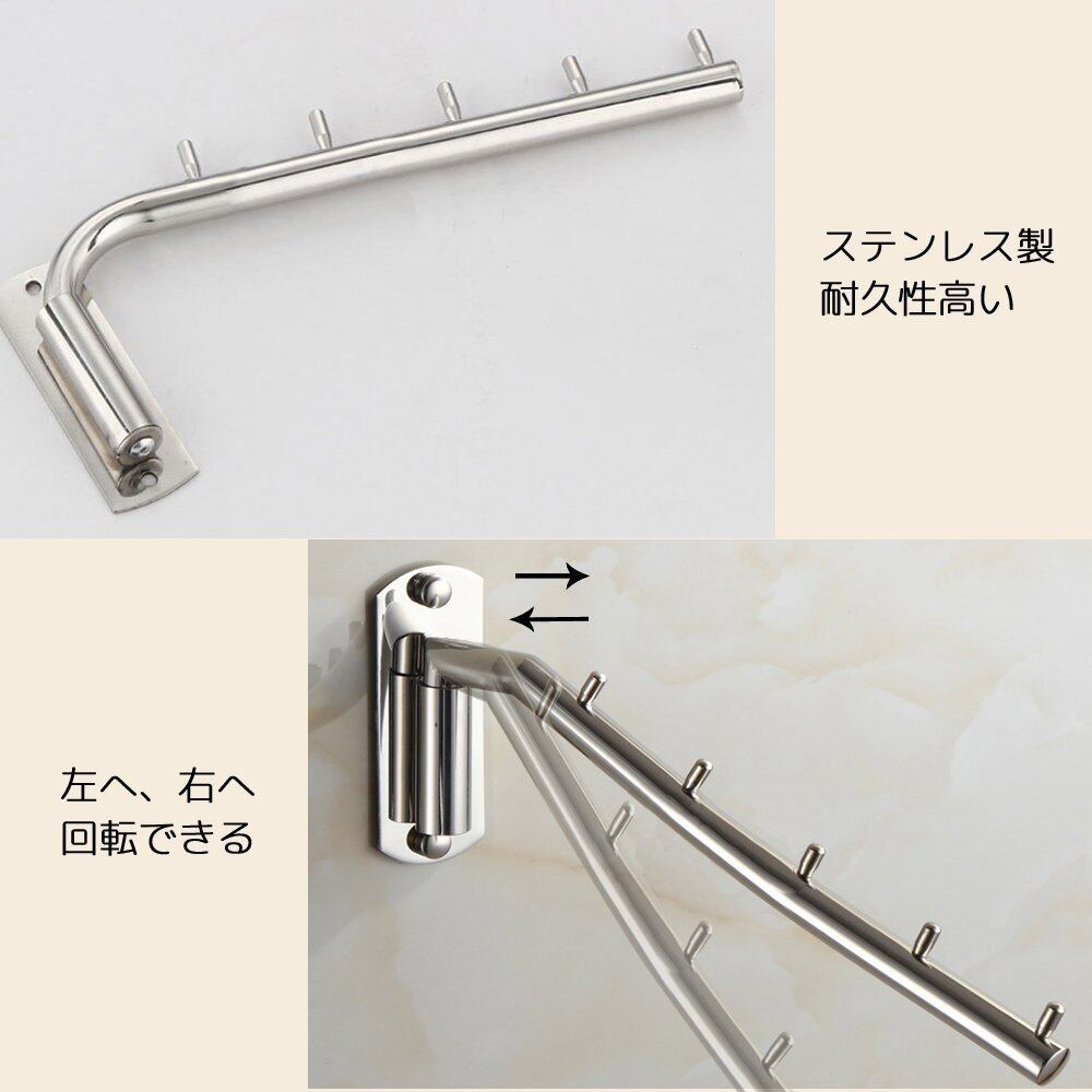 IKENOKOIウォールハンガー 壁掛けフック 回転可 服/帽子/鞄収納 ステンレス 玄関/浴室/キッチン/ベッドルーム(5連 A)