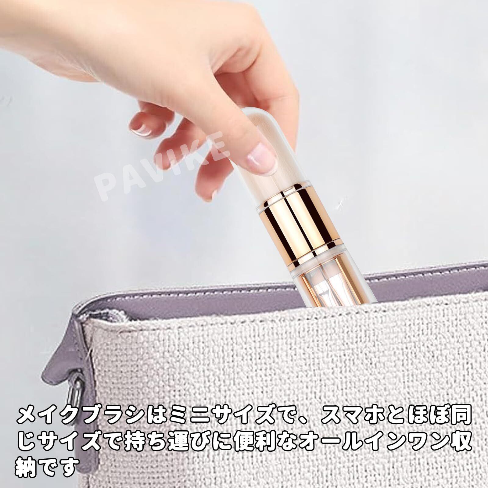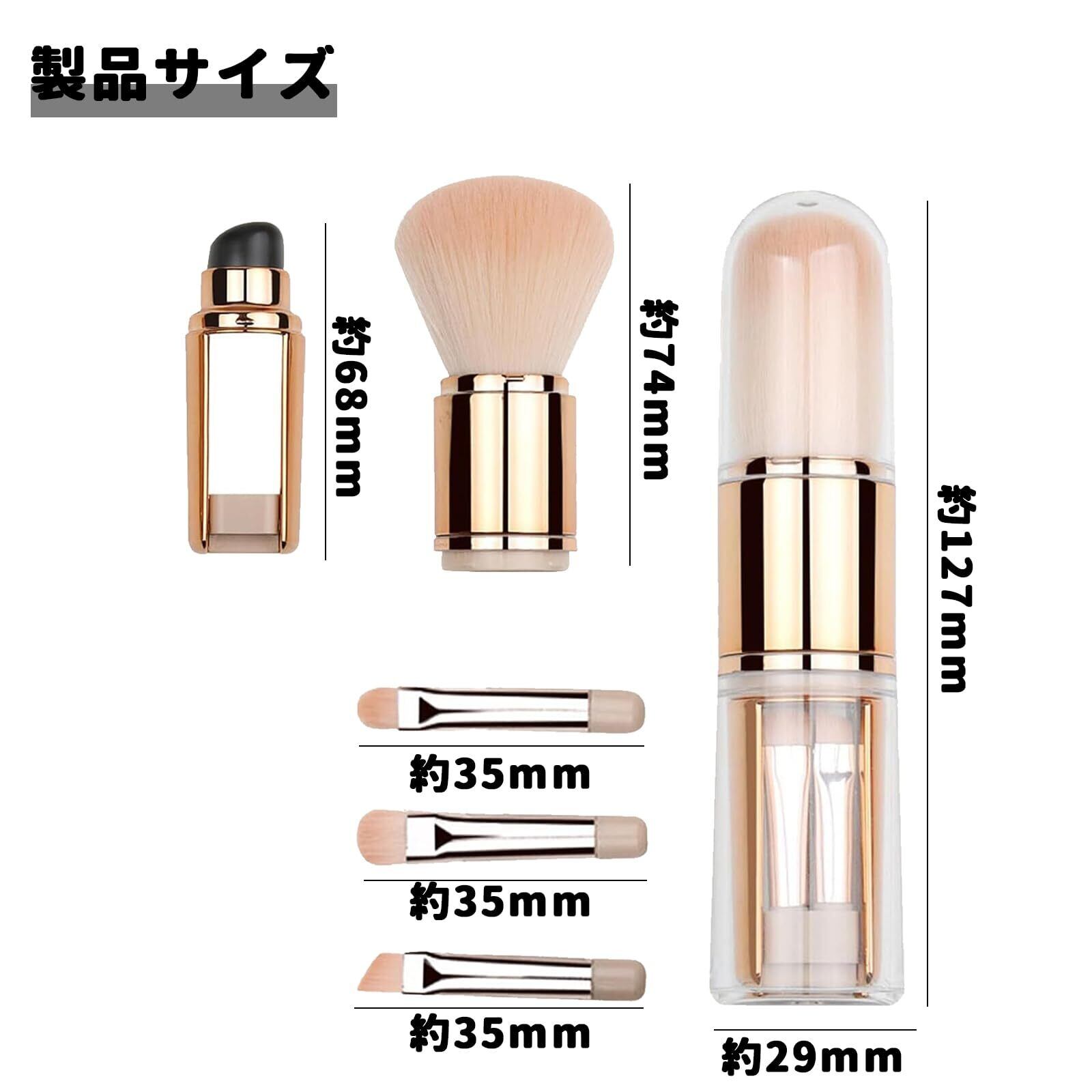 【商品内容】サイズは13*3cmで、重さは60gです。ブラシ5本セット(パウダーブラシ、シリコン製リップブラシ、ディテールブラシ、アイシャドウブラシ、アイライブラシ)、人工繊維、プラスチック、シリコンで作られており、小さくて便利で持ち運びが簡単です。