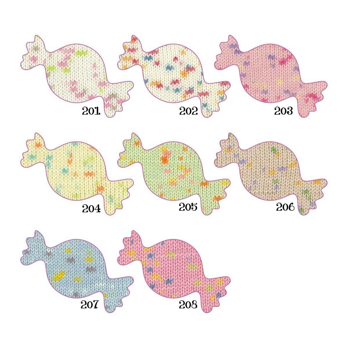 人気カラーをベースに、編むとドットに見えるキャンディカラーをプリントしました。