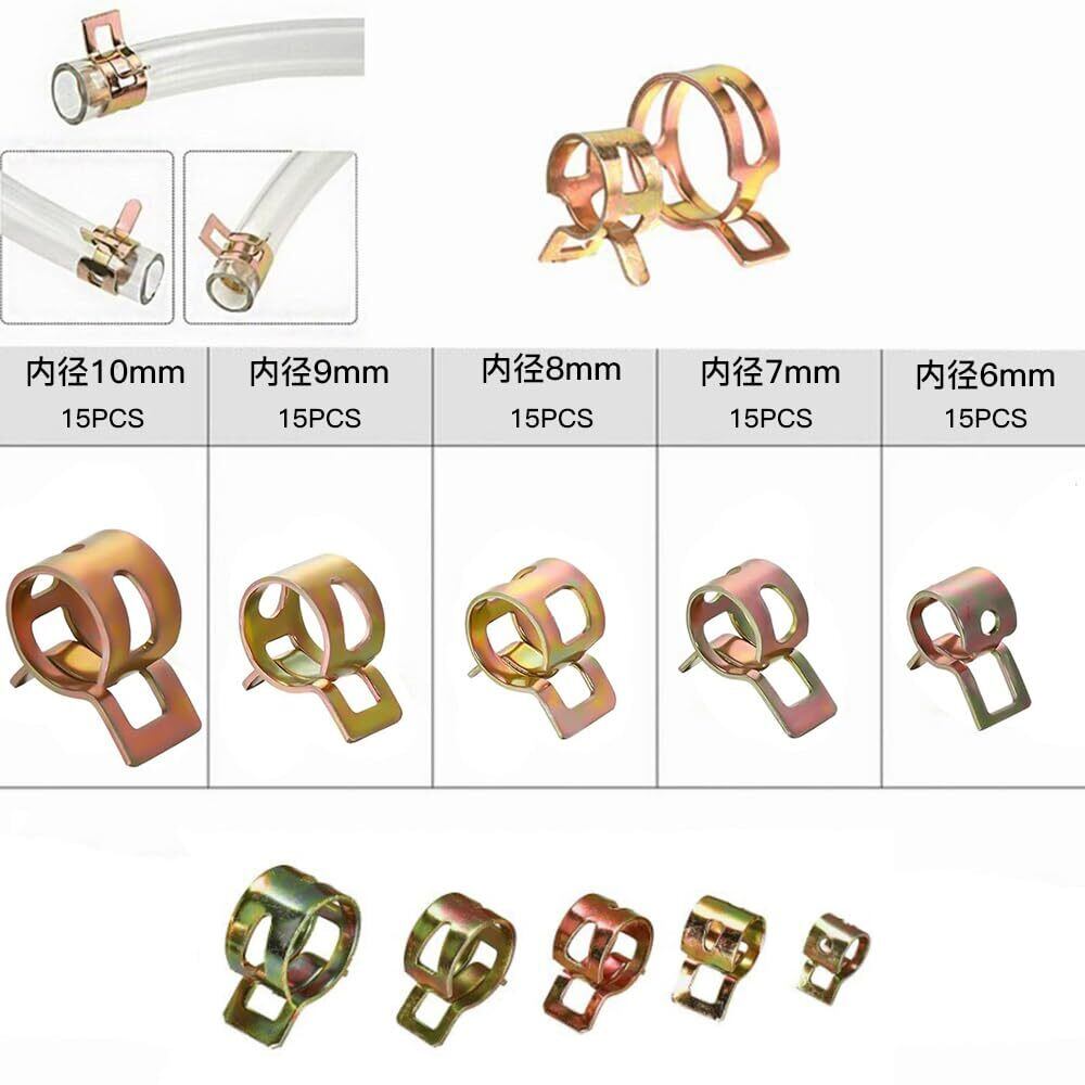 LOYELEY ホースクランプ 内径6-10mm 75個セット ホースバンド きんぞくかんクランプ ワンタッチホースクランプ スプリングホースクリッ 強力 便利 固定用 燃料ホース/水道用 収納ケース付き