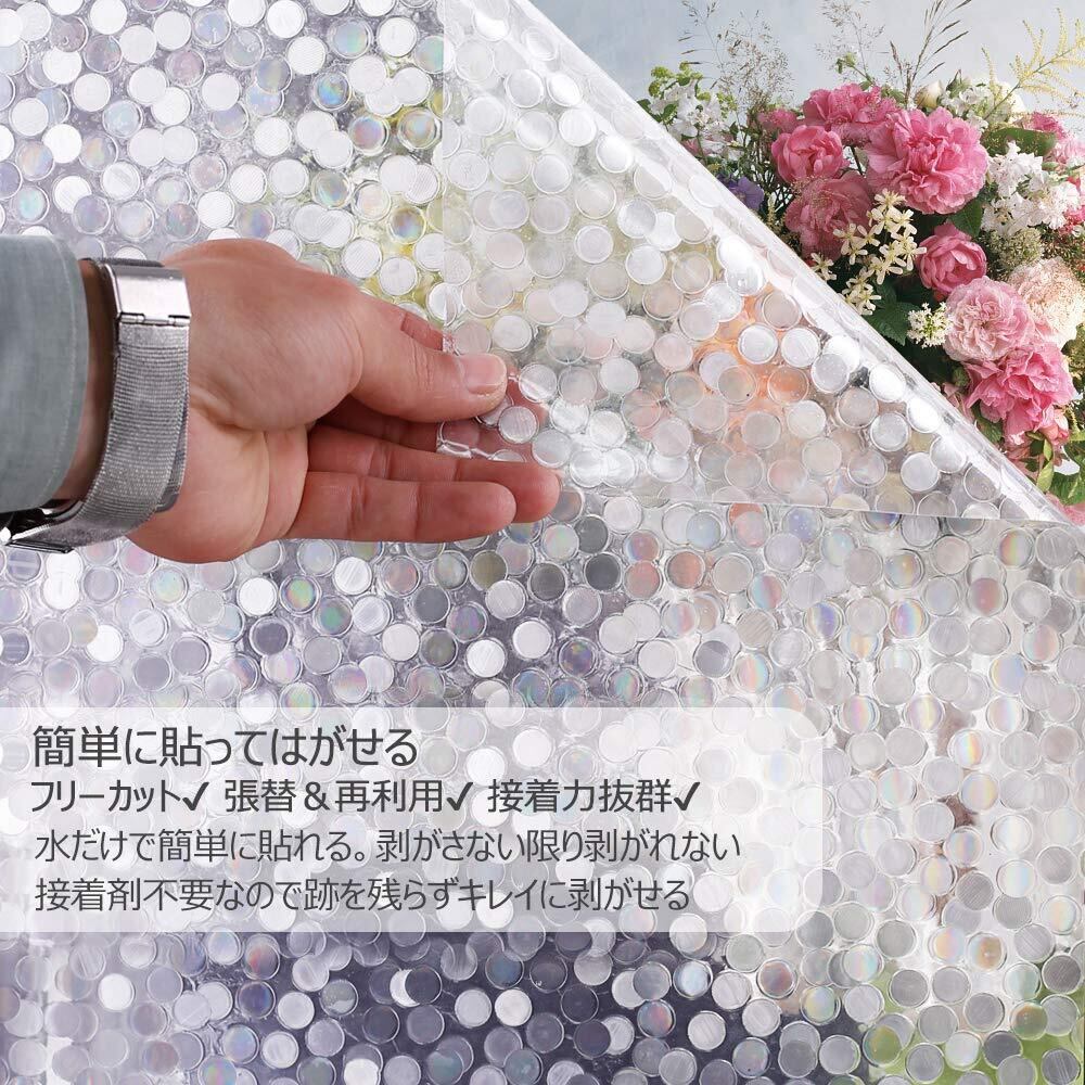 Rabbitgoo 窓 めかくしシート ガラス 窓用 フィルム 目隠し 遮光 断熱 結露防止 リメイク 日よけ 風呂 浴室 食器棚 ベランダ 窓ガラス 目隠しシート 断熱シート 結露防止シート 窓用フィルム シート シール ステンドグラス 貼ってはがせる 窓に貼るカーテン 外から見えない おしゃれ 飛散防止 (水玉柄 44.5 x 200cm) | hananoki