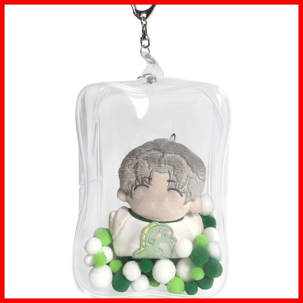 YUYAKESHI OB11 ケース おもちゃ bjd 旅行 透明 ソフト バッグ 痛バ 外出 人形 お出かけ用 キーホルダー ぬいば 防塵 収納(四角・ポンポンボール付・15cm) | hananoki