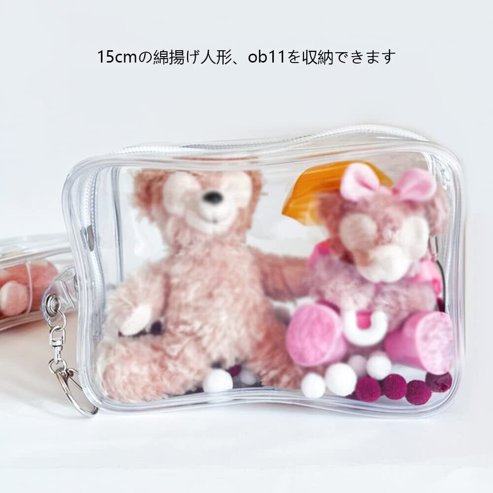 YUYAKESHI OB11 ケース おもちゃ bjd 旅行 透明 ソフト バッグ 痛バ 外出 人形 お出かけ用 キーホルダー ぬいば 防塵 収納(四角・ポンポンボール付・15cm)