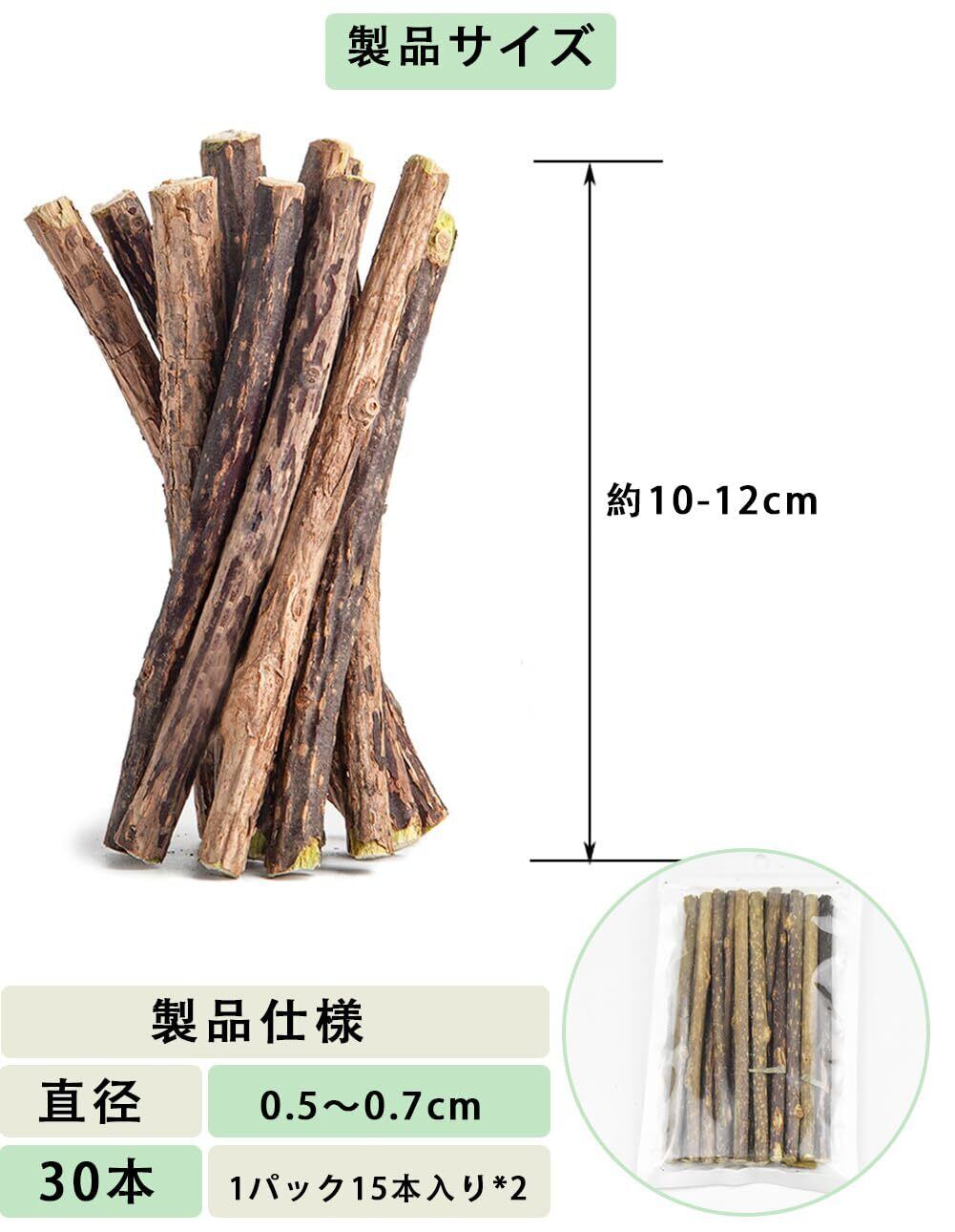 【パケージ内容】無添加天然木*30本。サイズ:長さ約10cm~12cm、直径約0.5~0.7cm。1パック15本入り*2=30本。