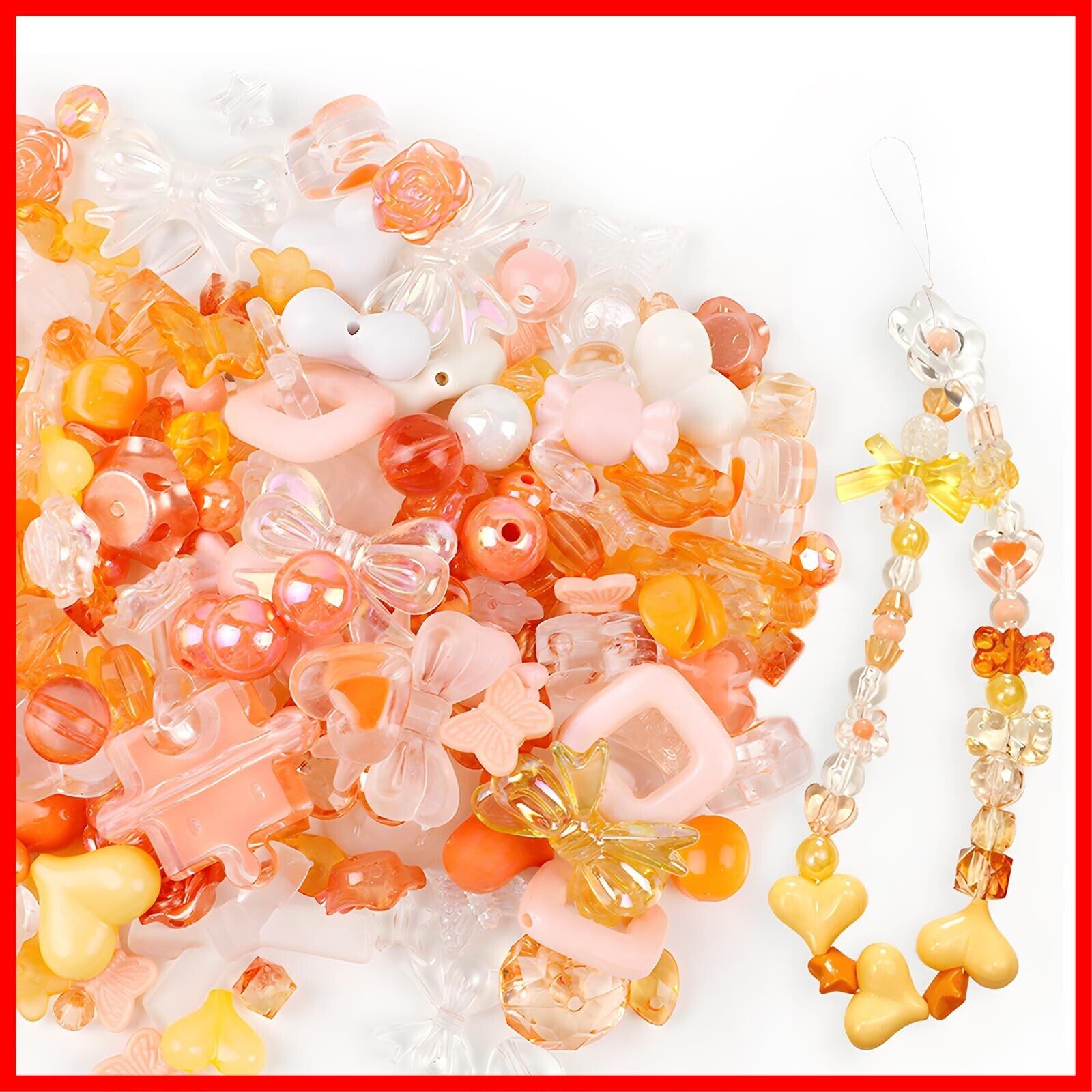 aninako ビーズ ミックス デコパーツ 100g約120個 透かしビーズ アクセサリー 手芸 ハンドメイド 材料 初心者向け ネックレス 髪飾り スマホのストラップ 装飾ボールアート用(オレンジ)