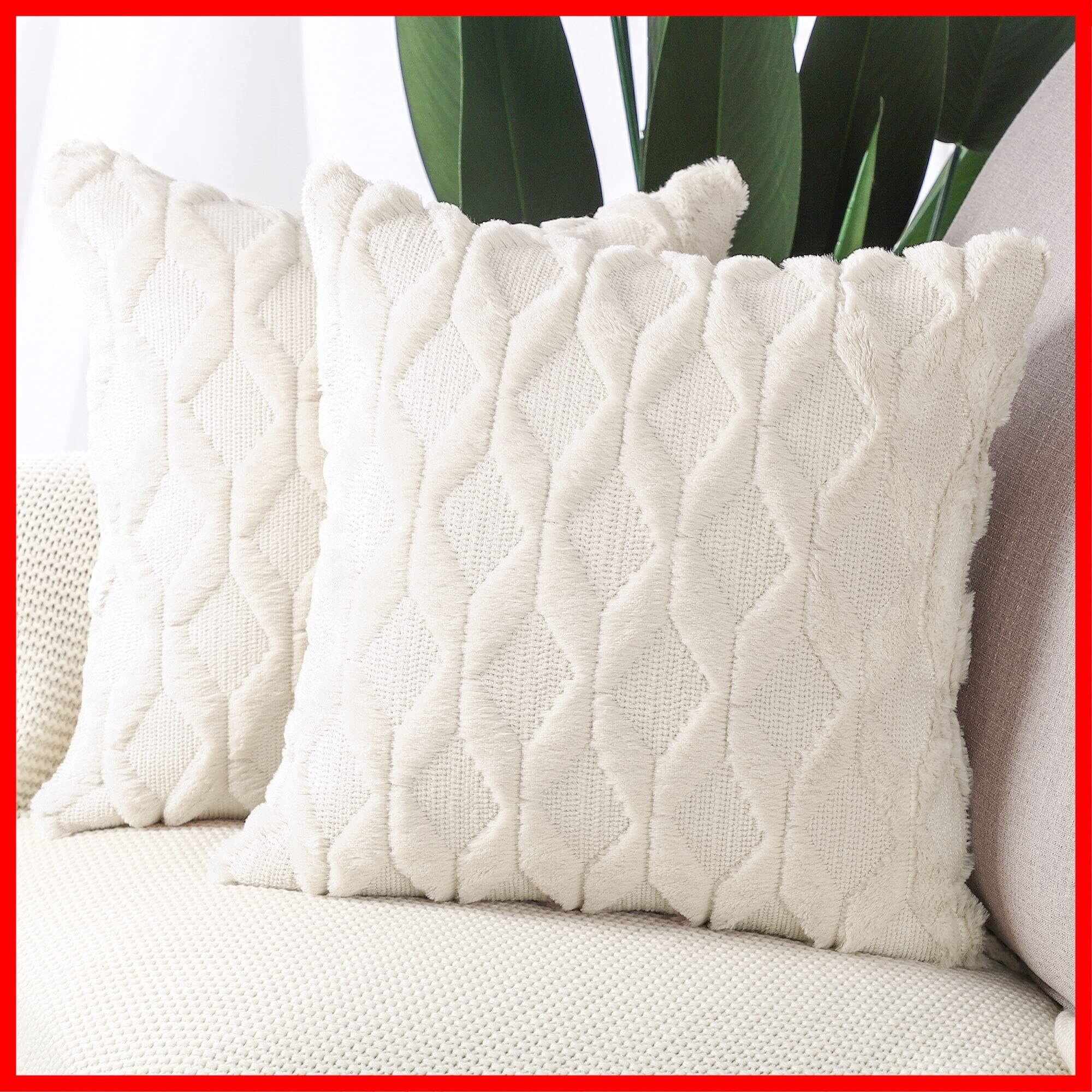 Madizz クッションカバー 2枚セット 柔らかい ぬいぐるみ ショートウール ベルベット 装飾的な 枕カバー 贅沢 スタイル クッションケース ソファ用 寝室用 45*45 cm ベージュ | hananoki