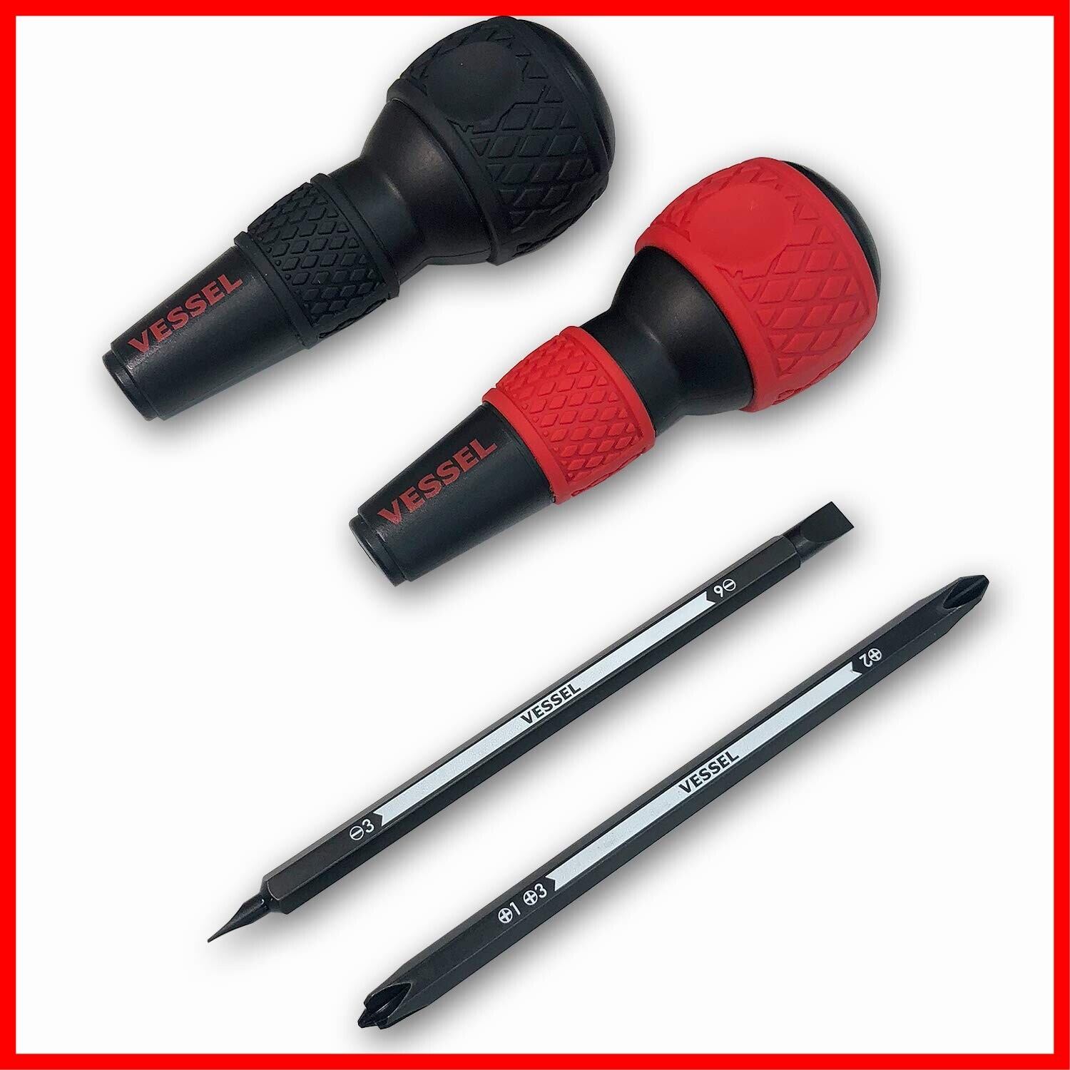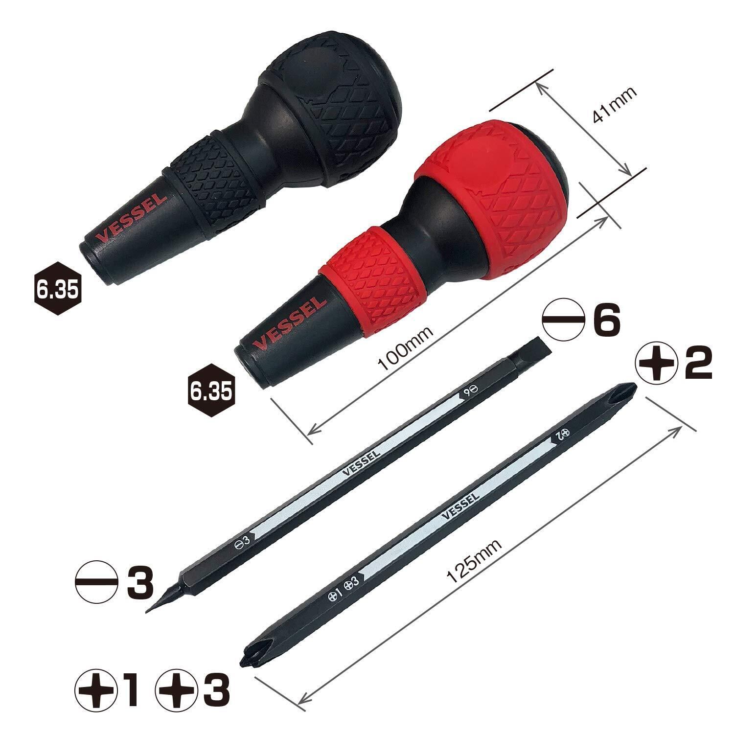セット明細:ボールグリップ…赤グリップ 1本 黒グリップ 1本、差替ビット…+2/+1 +3、−6/−3 各1本