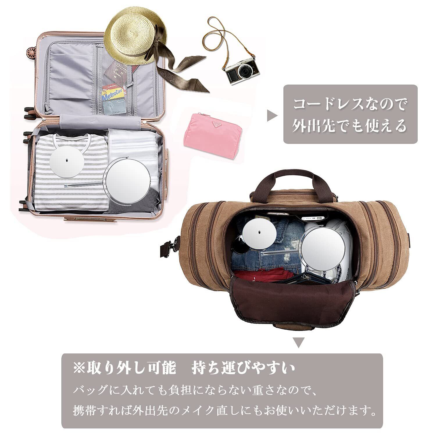 ❂本製品は両面鏡です。片面は5倍鏡になっています。 ※5倍拡大鏡は鏡に顔を15cm前後まで近づけて、焦点を合わせてご使用ください。