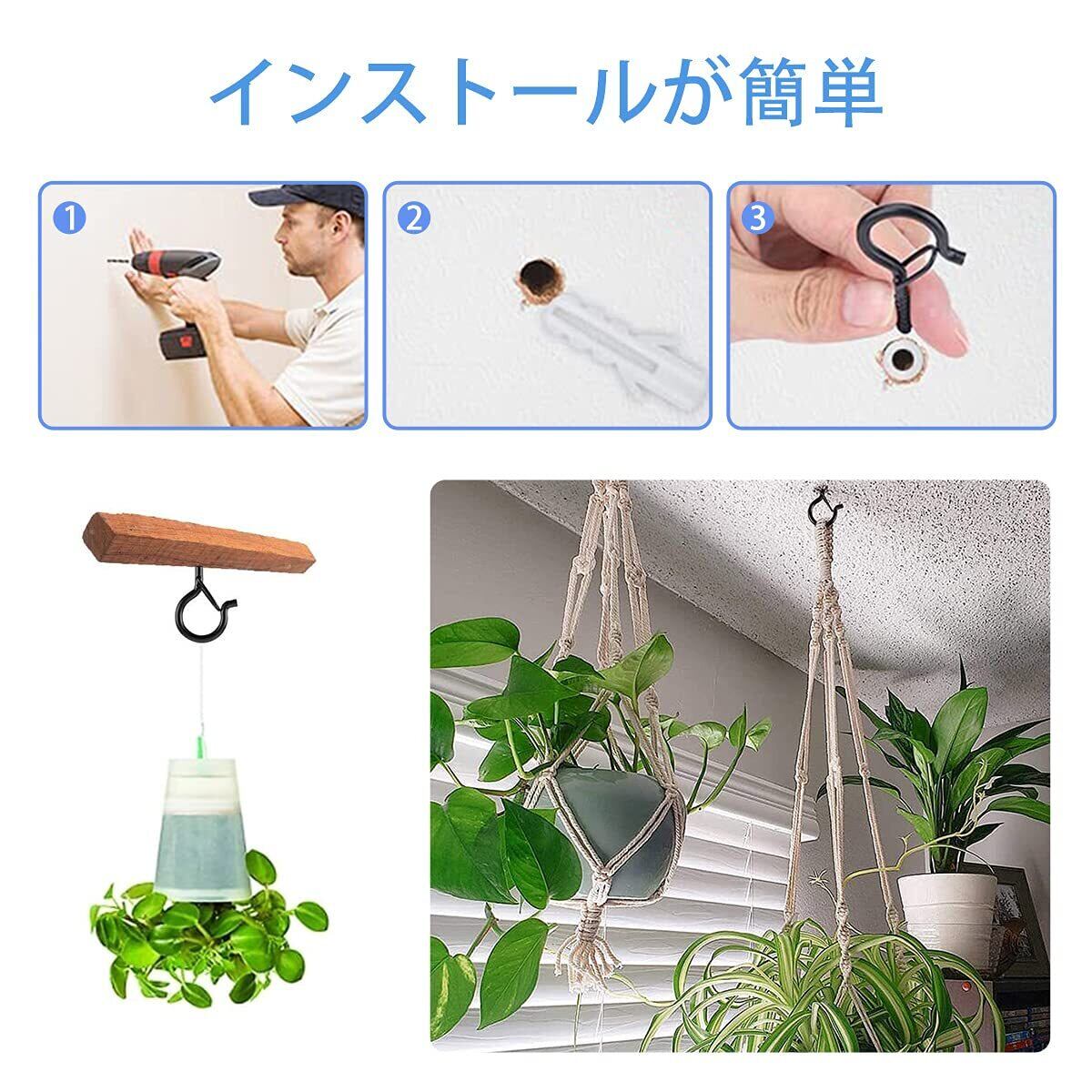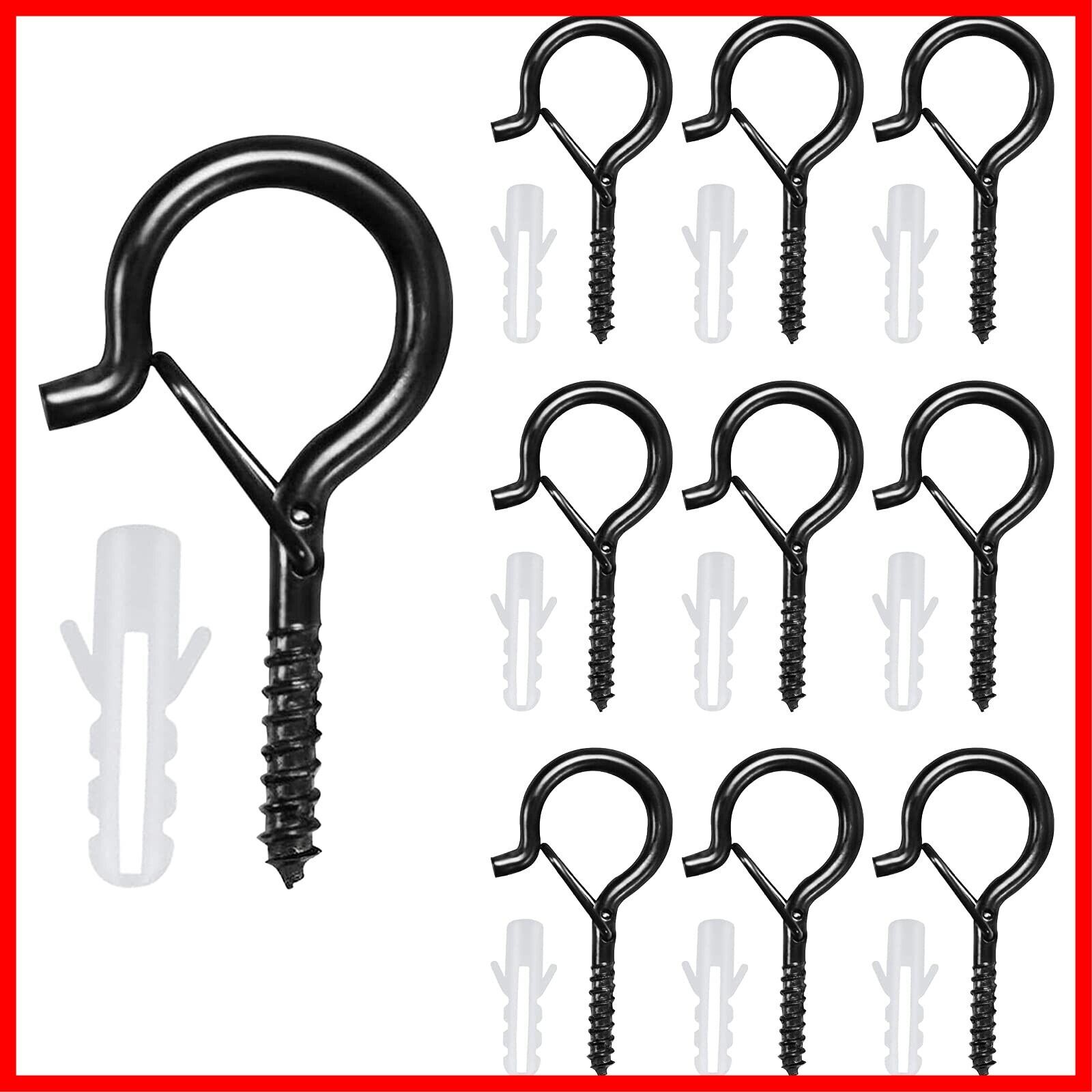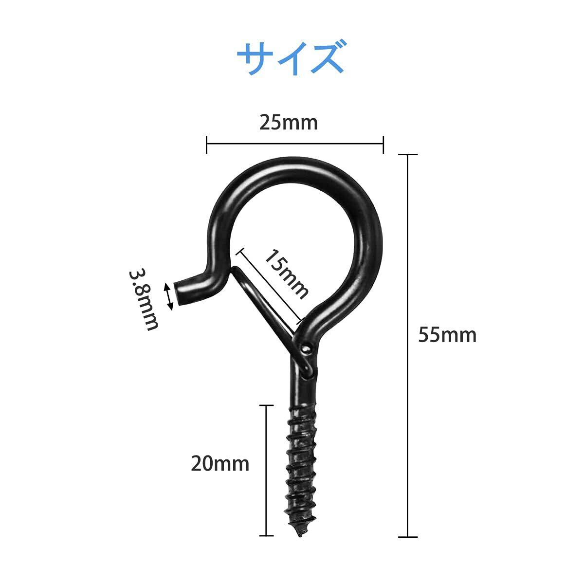 10個入り天井 フック 炭素鋼 ネジ フック 安全バックルデザイン搭載 ねじ込み式ネジフック 全長55 mm 壁フックキャビネットフック スクリューアイフック ライトクリスマスライトハンガーフック/植物/台所用品/風鈴などの吊り下げに最適 プラスチック拡張ピン付き (ブラック)