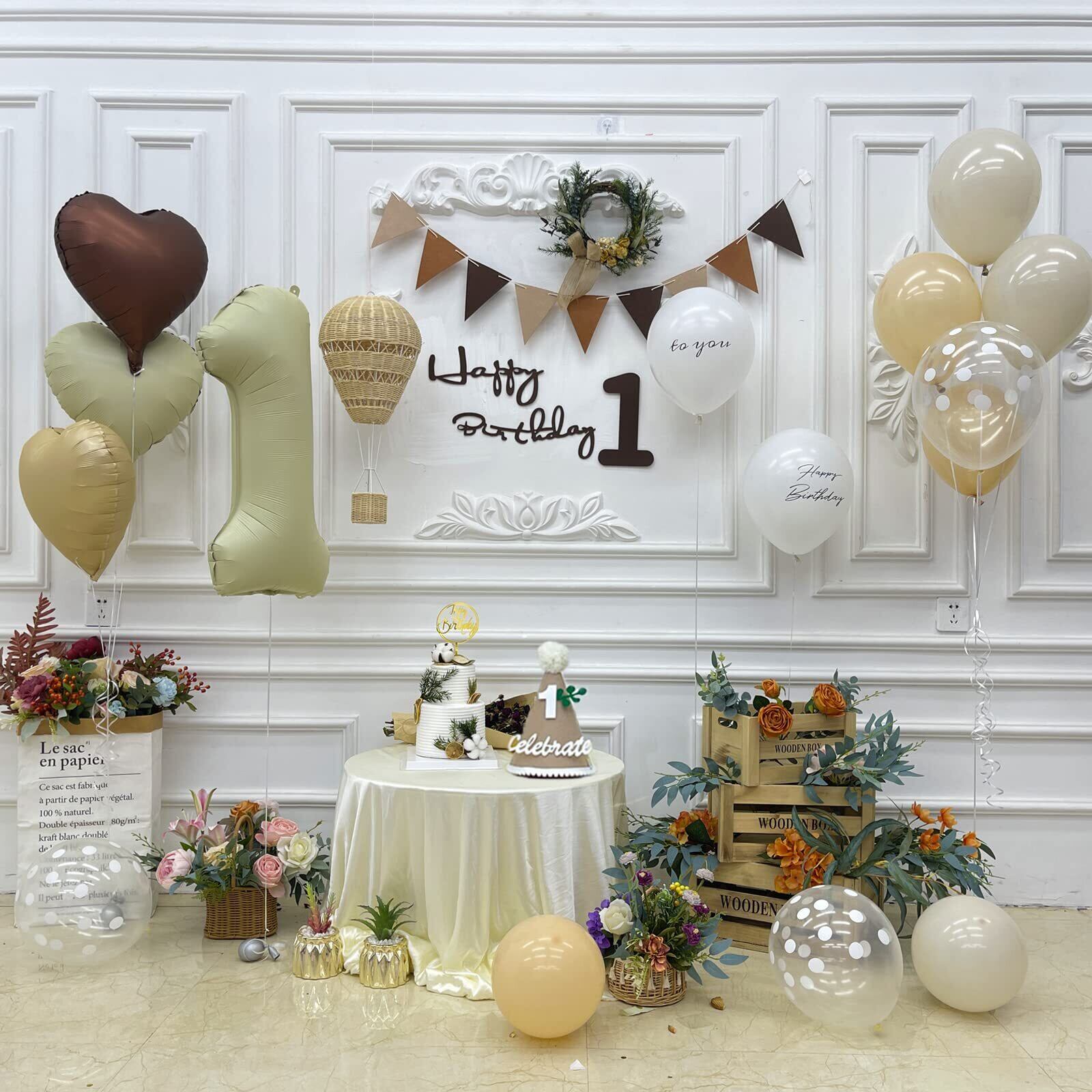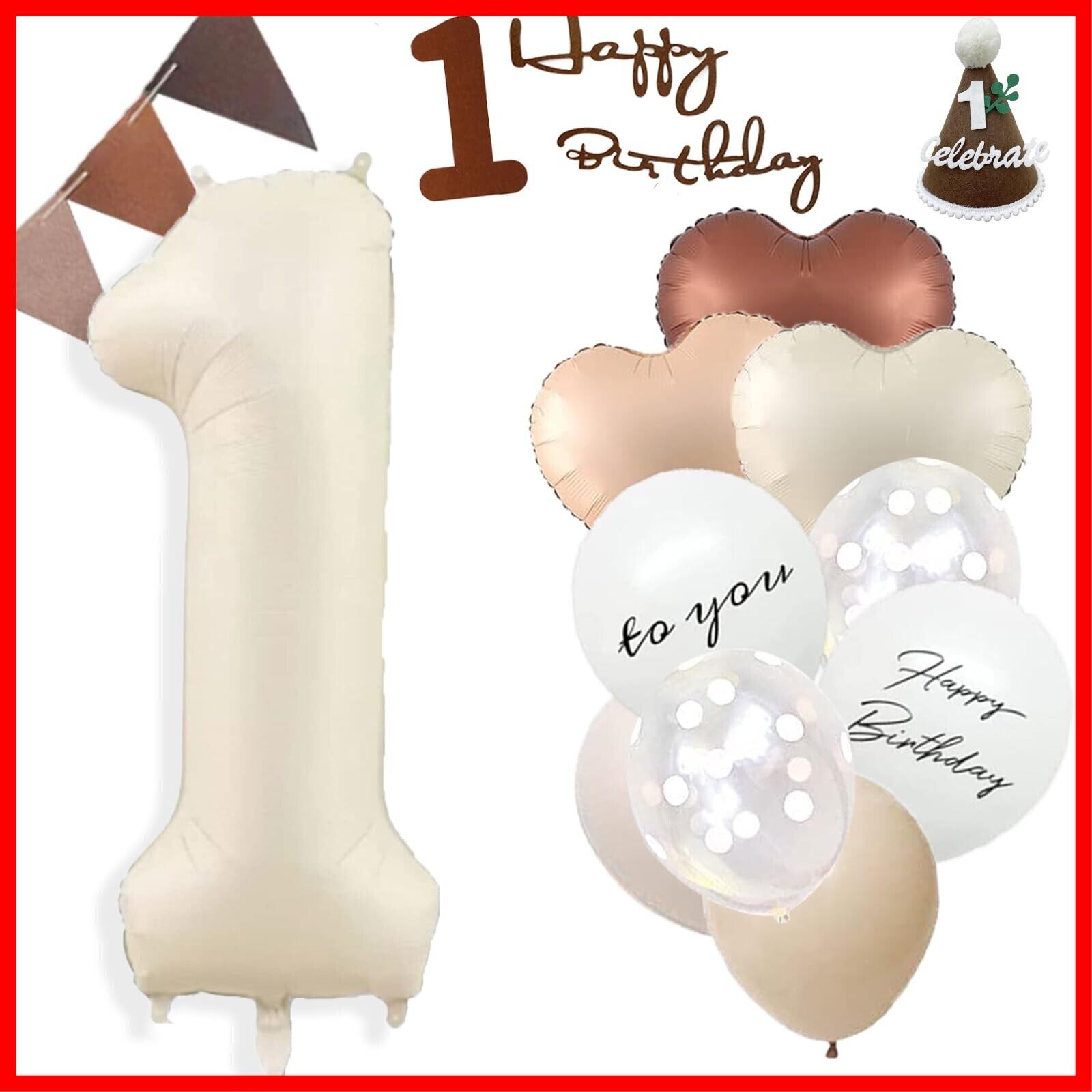 【セット内容】①ゴム風船×13(Happy Birthday × 2、TO YOU × 2、グレージュ× 3、肌色× 3、クリアドット× 3) ②ハートバルーン×3(クリーム色×1、肌色×1、チョコレート色×1) ③数字バルーン×1 ④三角帽子×1 ⑤フェルトの三角旗ガーランド×1 ⑥フェルト数字 ⑦フェルトアルファベット(2種類あり・ランダム発送) ⑧両面テープ