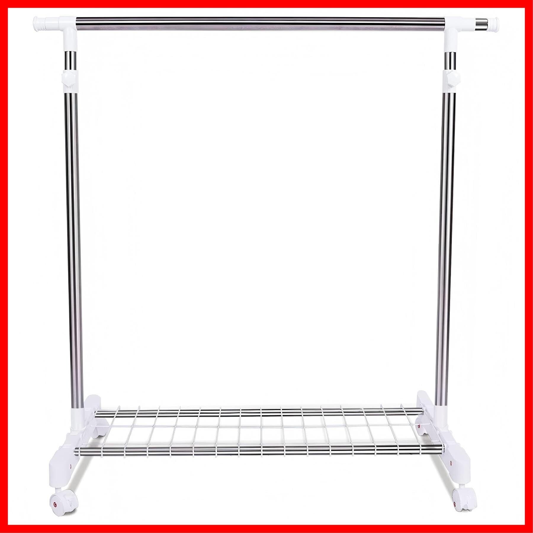 パイプハンガーラック シングル 直径26.5mm 幅90~155×奥行43×高さ90~160cm 高さ調節 縦横伸縮 キャスター ネット付き 耐荷重40kg