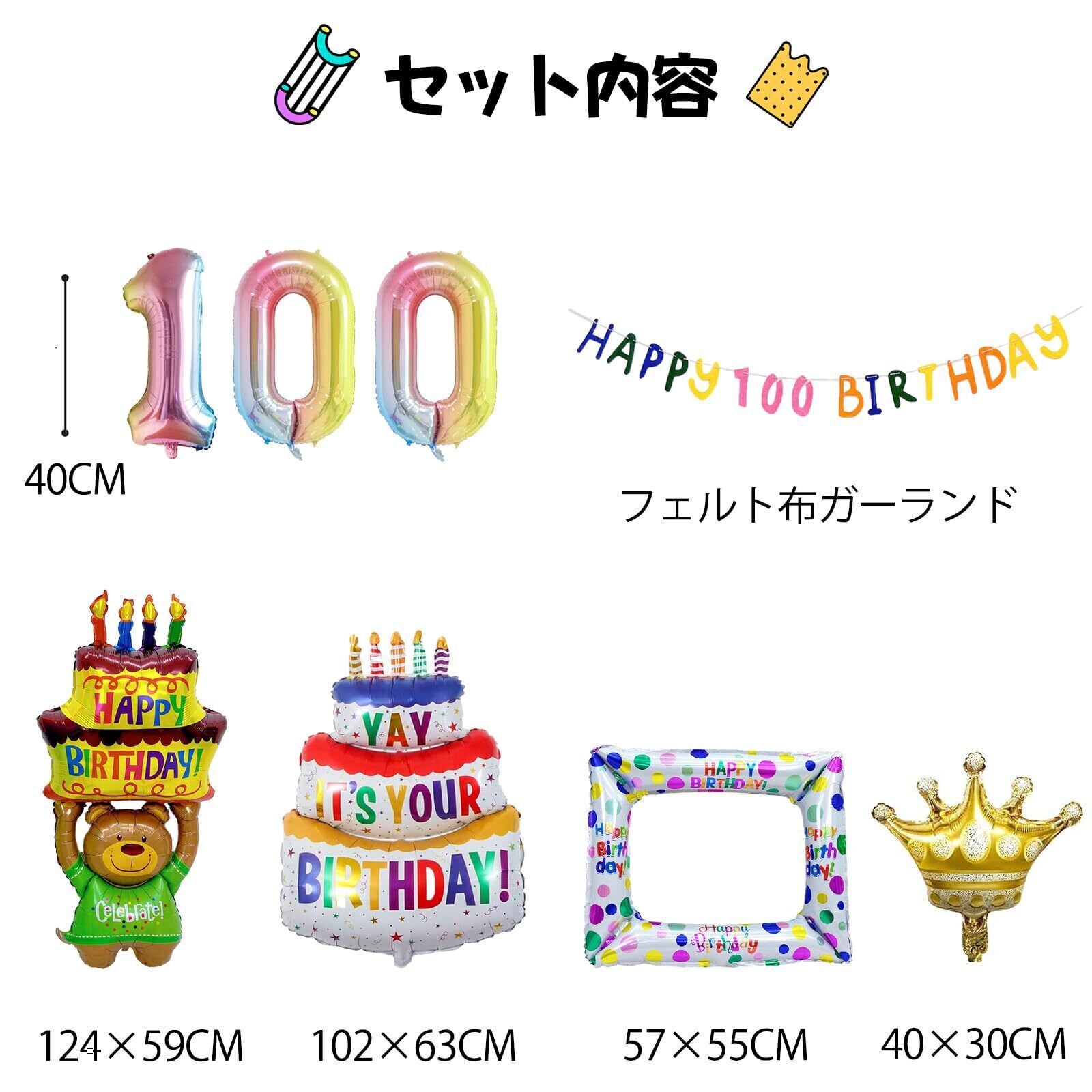 【セット内容】①フェルト布ガーランド×1 ②ホイルバルーン×4 ③数字バルーン[100]