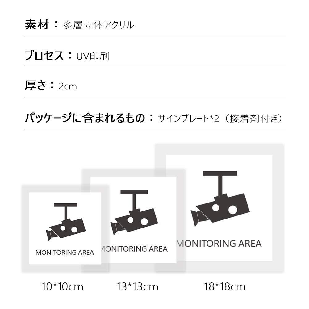 HIGHAWK防犯カメラ 防犯ステッカー ドアプレート 注意 サイン 店舗 壁 看板 サインプレート アクリル 標識案内 ウォール 防水 英語 2枚(MONITORING AREA・10*10cm) | hananoki