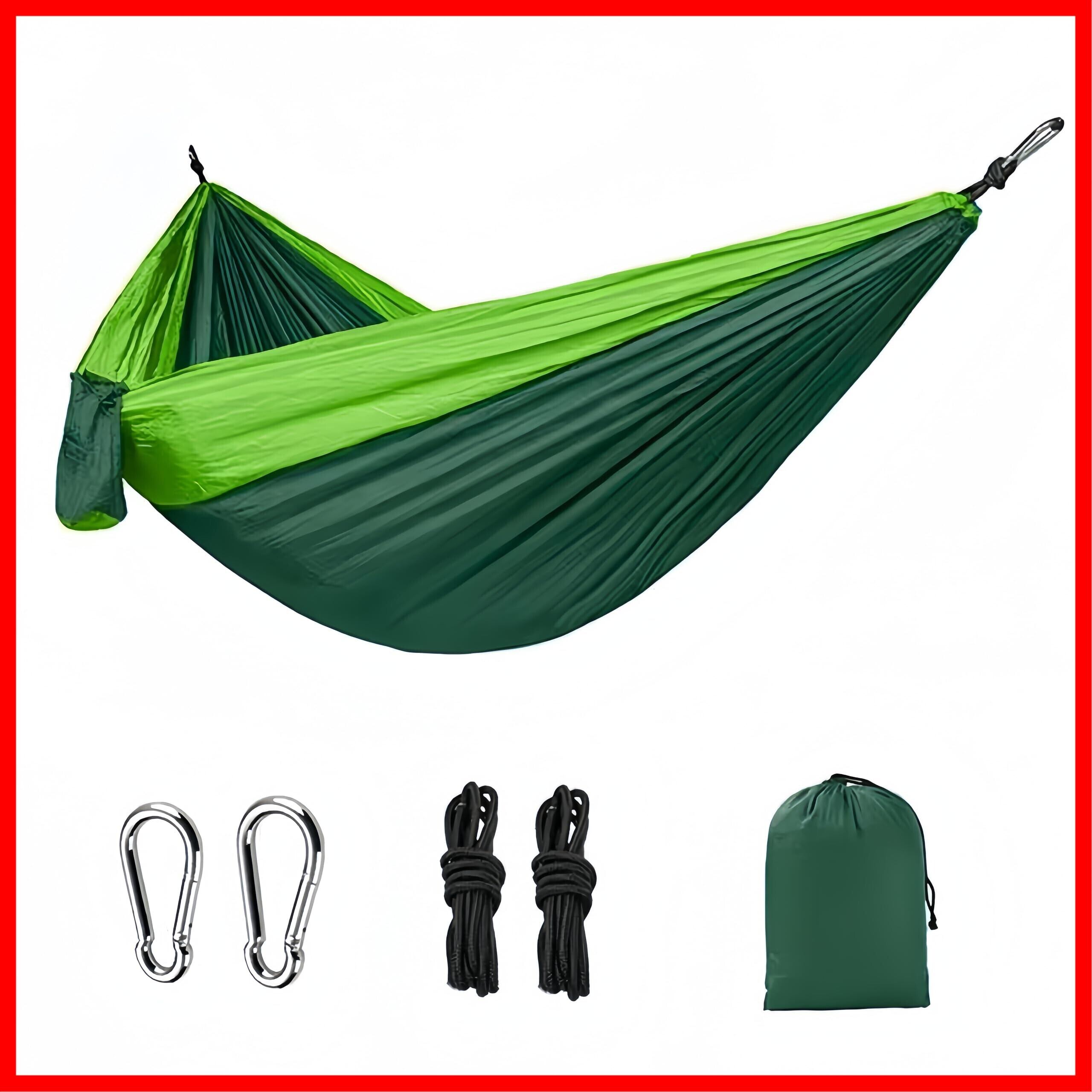 JiangMuXin ハンモック パラシュート 専用ベルト付き 超広い 超軽量 余裕がある 275×140cm 耐荷重350kg 室内 アウトドア キャンプ 公園 三人用 コンパクト 部屋 風通し良く 涼しい サラサラ肌触り良い 高耐久安心 通気速乾丈夫安全 カラビナ付き (緑)