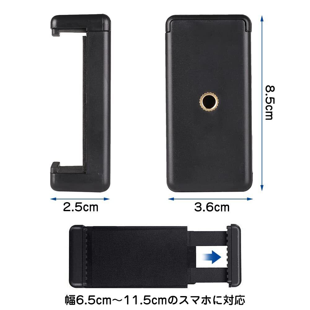 スマートフォンホルダー 三脚 スマホホルダー 幅6.5-11.5cmに対応 アタッチメント スマホ三脚ホルダー 携帯ホルダー 撮影 固定 スマホ アダプター クリップ (大きめ)