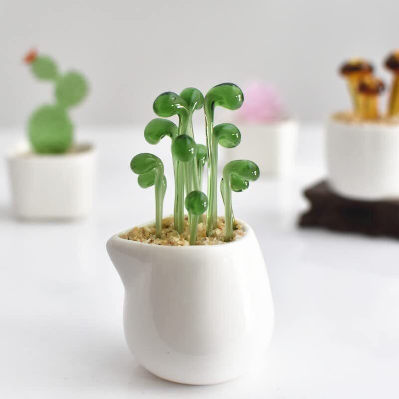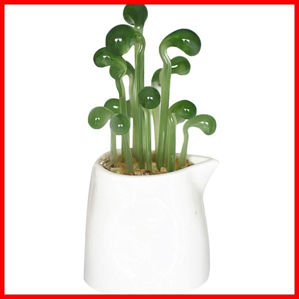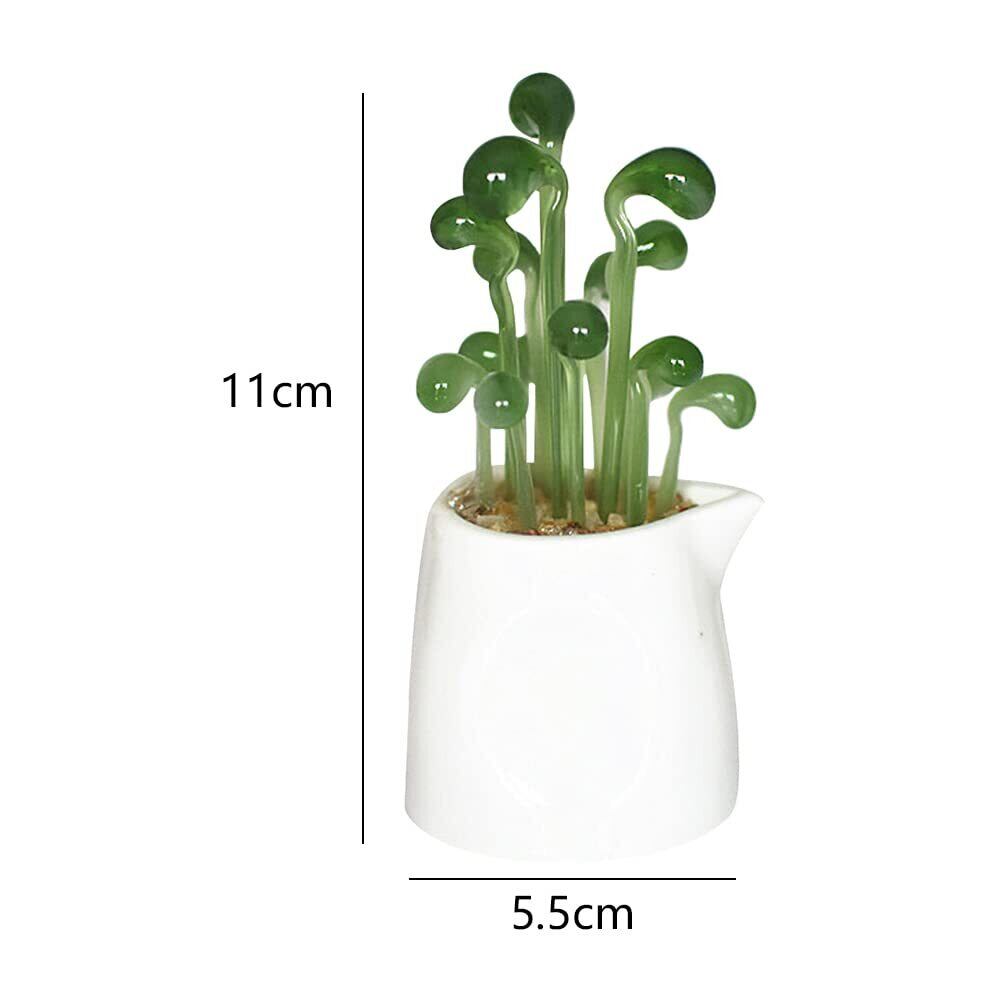 HIGHAWK るり製 工芸品 装飾 飾り物 オブジェ 小物 鉢植え インテリア 置物 人工植物 ミニ植木鉢 オーナメント 手作り 玄関 机 テーブル ガラスアート(グリーン・もやし)