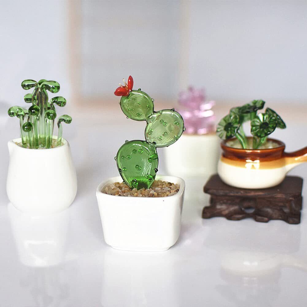 ●デザイン:かわいいオーナメント、美しい小さなもの、植物の外観、全体は丈夫でワンピース、透明、見た目は小さくて場所をとりません。生活空間を飾り、単調なスペースに活力を与え、暖かさを感じさせます。植木鉢には固定されたるり製砂があります。