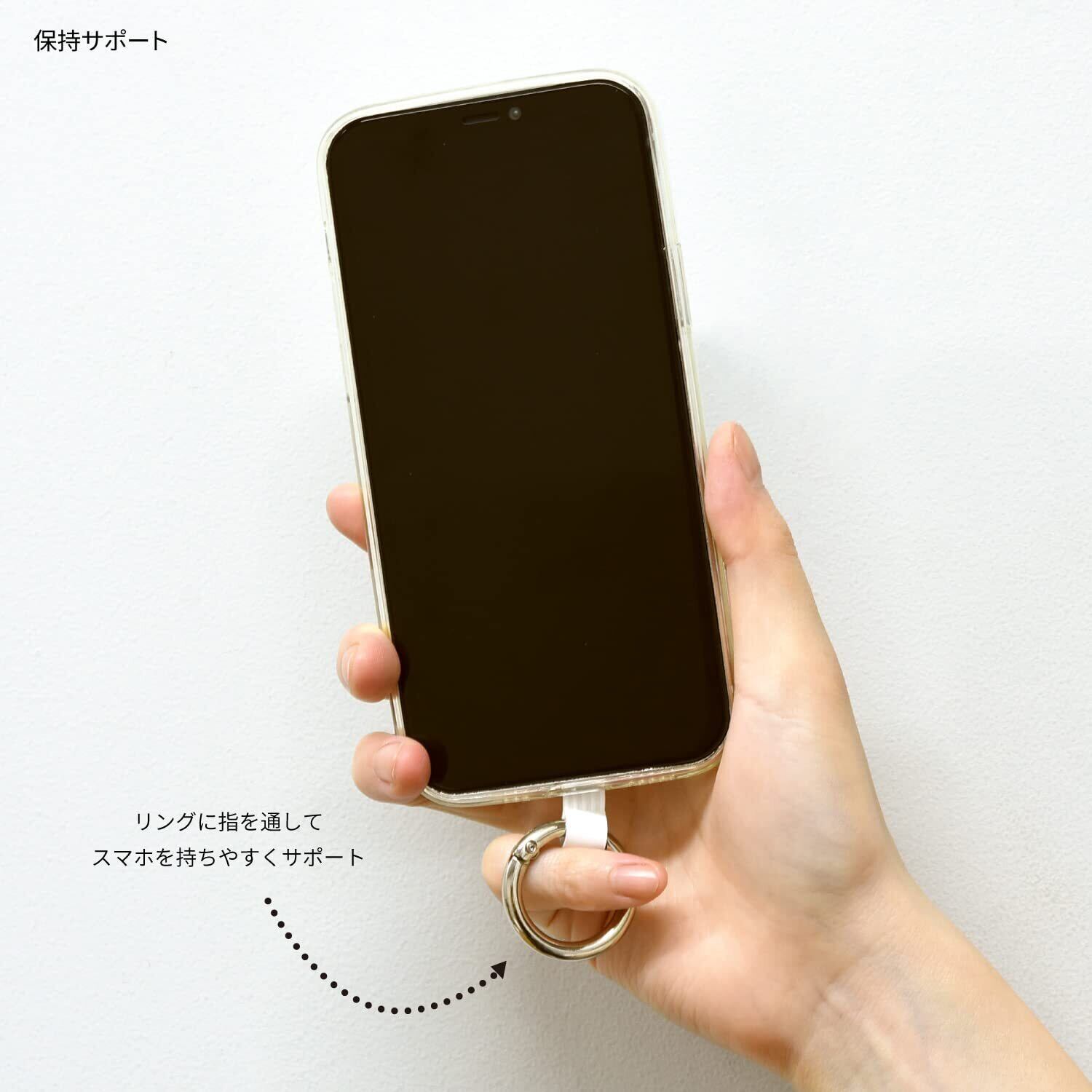 リングに指を通すことでスマートフォンの持ちやすさを向上し、落下を防止します。