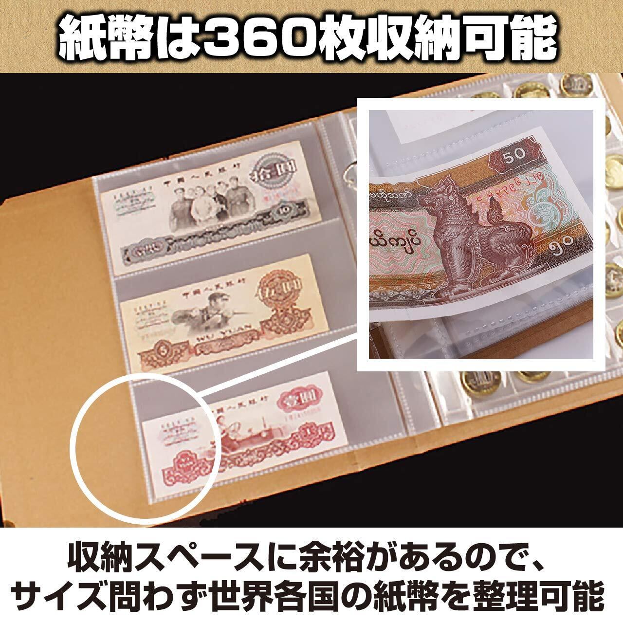 紙幣は360枚収納可能:紙幣の収納スペースは1ページ3段に分かれていて、全部で360枚の紙幣を収納することができます。収納スペースに余裕がありますので、大きめな紙幣の収納も可能。世界各国の紙幣を整理することができます。