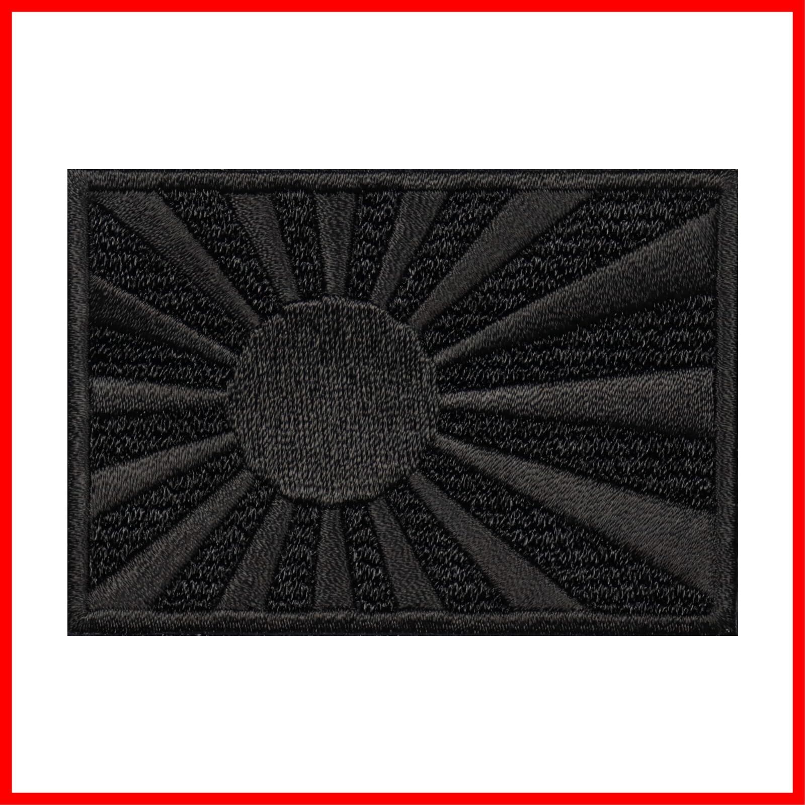 日本製 ミリタリー ワッペン 面ファスナー ベルクロパッチ 日本製 ワッペン屋 WappenCook 日の丸 旭日旗 海軍旗 刺繍 ブラック マジックテープ サバゲー装備 (旭日旗 S ブラック) | hananoki