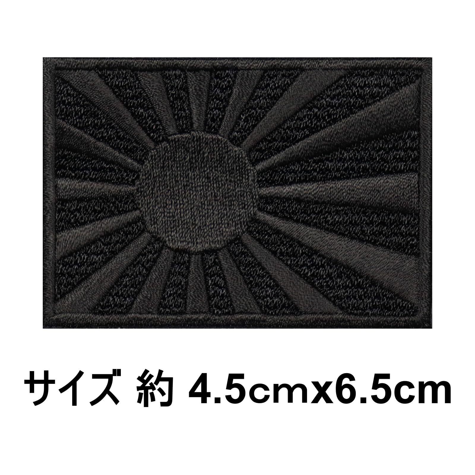 日本製 ミリタリー ワッペン 面ファスナー ベルクロパッチ 日本製 ワッペン屋 WappenCook 日の丸 旭日旗 海軍旗 刺繍 ブラック マジックテープ サバゲー装備 (旭日旗 S ブラック)