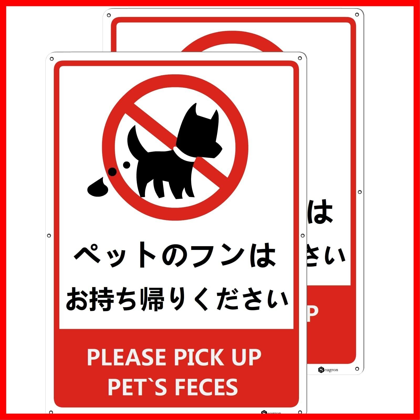 Seagron ペットのフンはお持ち帰りましょう 看板 犬 フン 犬の糞禁止看板 【Mサイズ】犬の糞尿厳禁 警告看板 注意サイン ペットのフン 糞 プレート 安全標識 1mm アルミ製 25cm×35cm 屋外 防水 2枚セット KAN03A