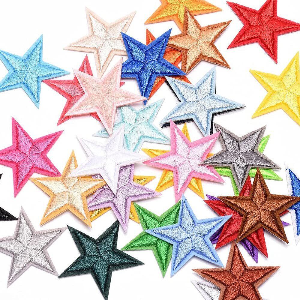 33色セット カラフル 星 スター 刺繍 ワッペン 星 アイロン アップリケ 女の子 男の子 DIY服 ミニワッペン ミシン手芸 可愛い装飾