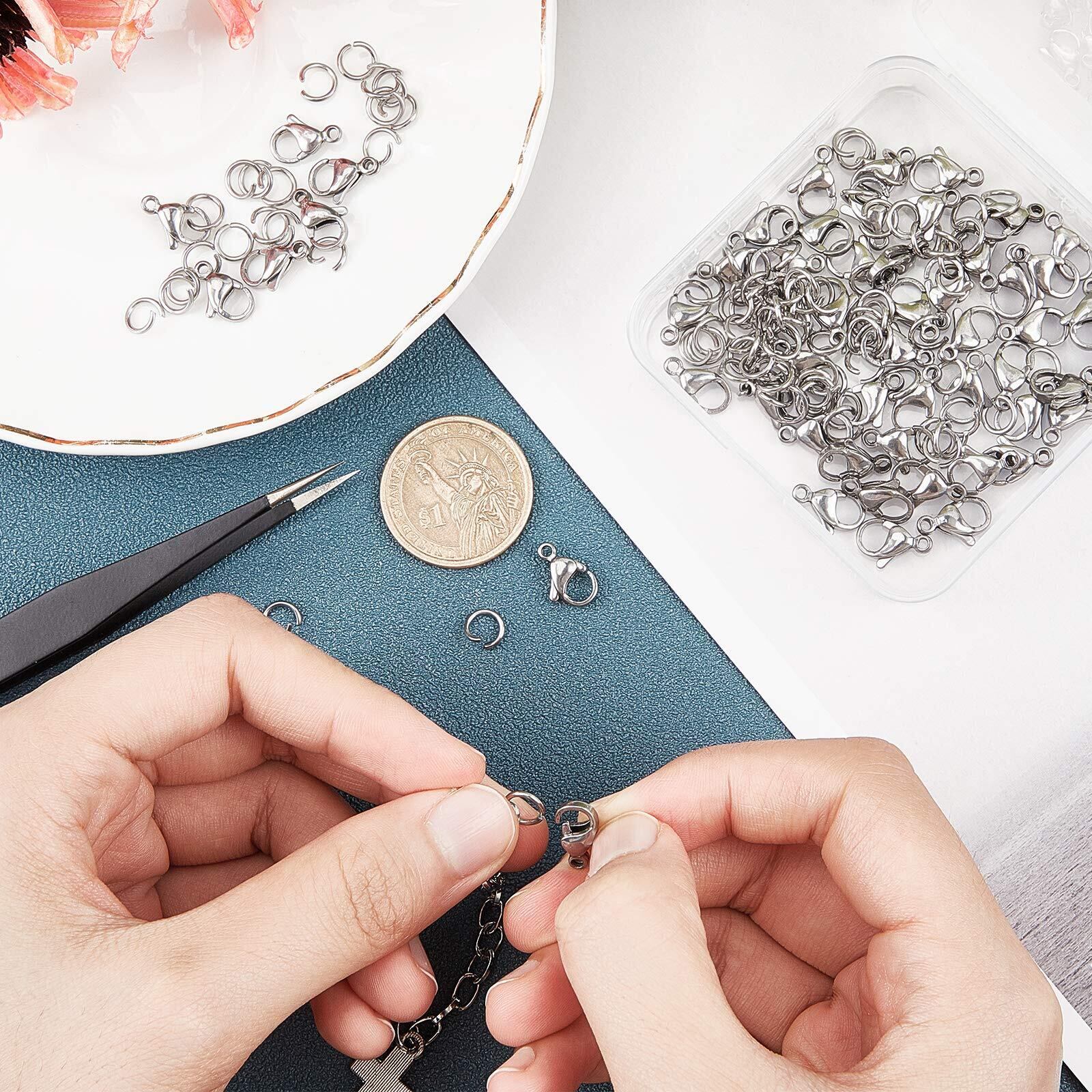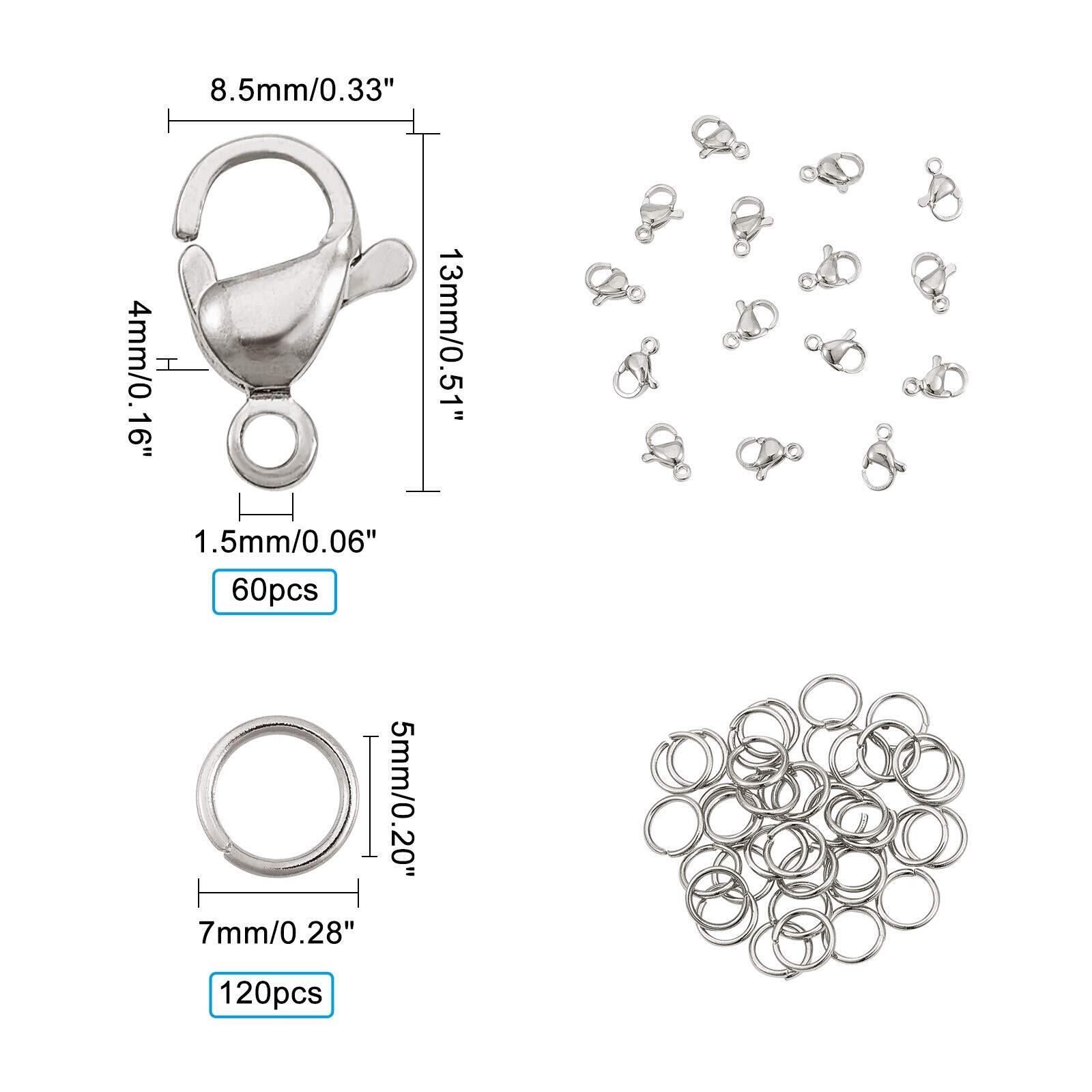マルカン・カニカンキット: パッケージには、透明なプラスチックの箱に60個のロブスタークロークラスプが付いた120個のオープンジャンプリングが含まれています。