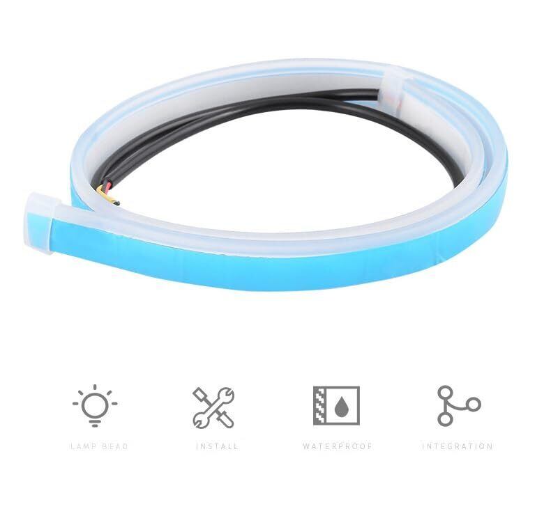 シーケンシャル ウインカー LEDテープ 流れるウインカー 12V車 LED シリコンチューブ 汎用品 60cm シーケンシャルウインカー ホワイト/アンバー ブルー/アンバー 白/黄 青/黄 2本セット切替 カット可能 超薄型 シリコン 柔らかい デイライト ダブルカラー 日本車専用 取付簡単 2本1セット (ホワイト)