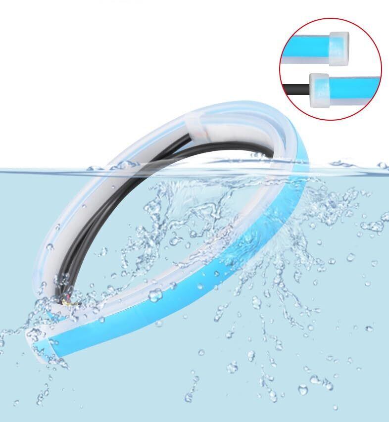 シーケンシャル ウインカー LEDテープ 流れるウインカー 12V車 LED シリコンチューブ 汎用品 60cm シーケンシャルウインカー ホワイト/アンバー ブルー/アンバー 白/黄 青/黄 2本セット切替 カット可能 超薄型 シリコン 柔らかい デイライト ダブルカラー 日本車専用 取付簡単 2本1セット (ホワイト) | hananoki