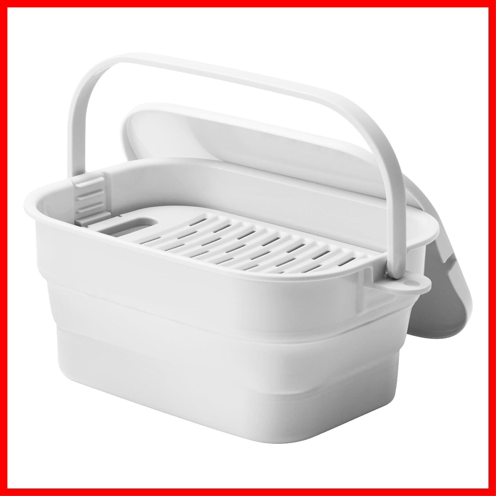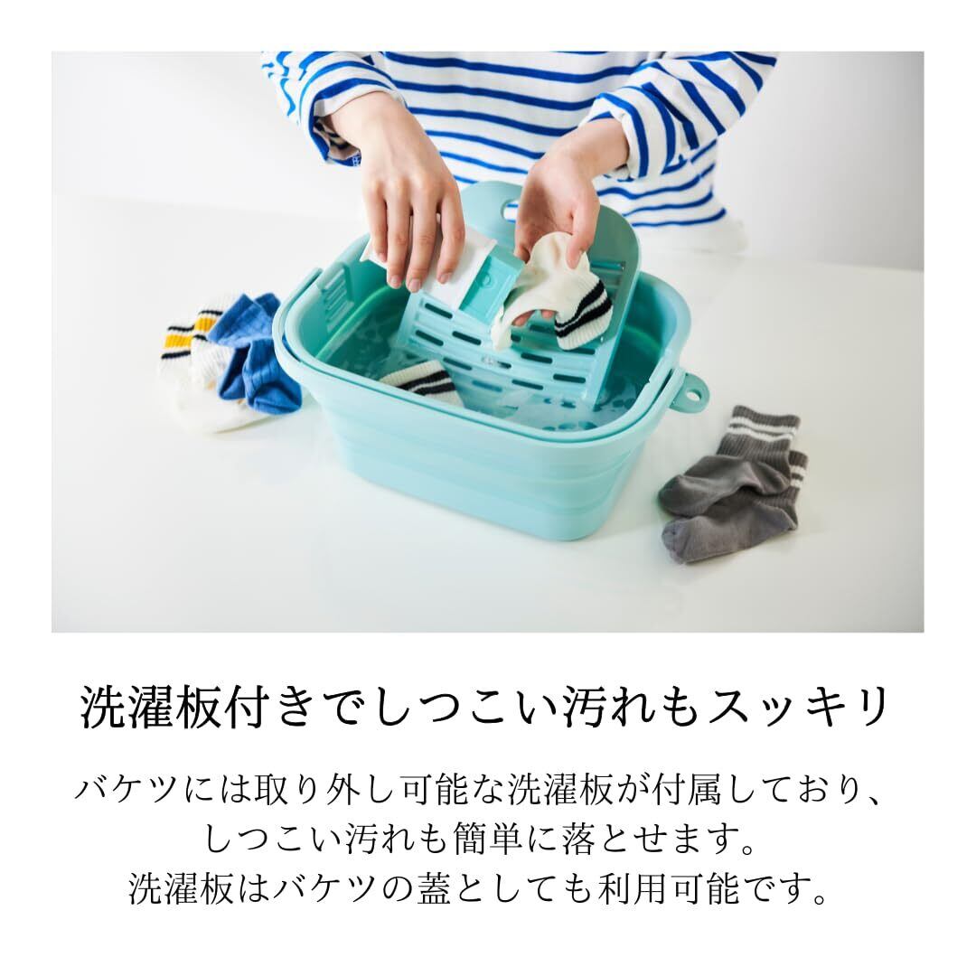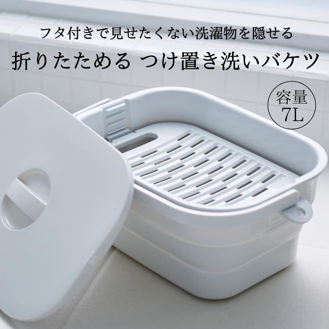 伊勢藤(ISETO) つけ置きバケツ 折りたためるつけ置き洗いバケツ ホワイト 7L 幅36.6×奥行24.6×高さ6.7~16cm 日本製 漂白剤対応 耐熱100℃ 洗濯板付 フタ付 吊り下げ用フック付 保温効果 上靴洗い 折りたたみ たたんでコンパクト I-617 | hananoki