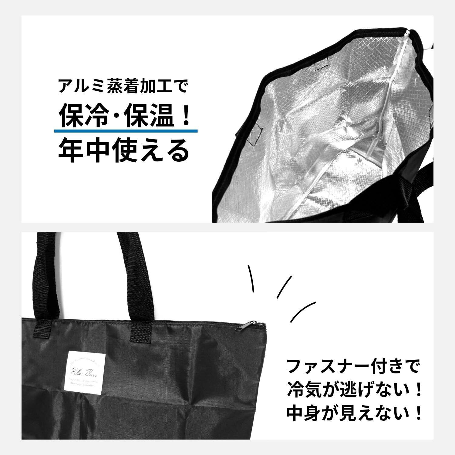 【保冷保温】コンパクトながらも保冷、保温機能が付いてますので熱い夏から寒い冬までオールシーズン使えます。また、上部をファスナーで閉じる事が出来るので冷気が漏れません!ファスナーがあると荷物が飛び出さずに何かと安心です。