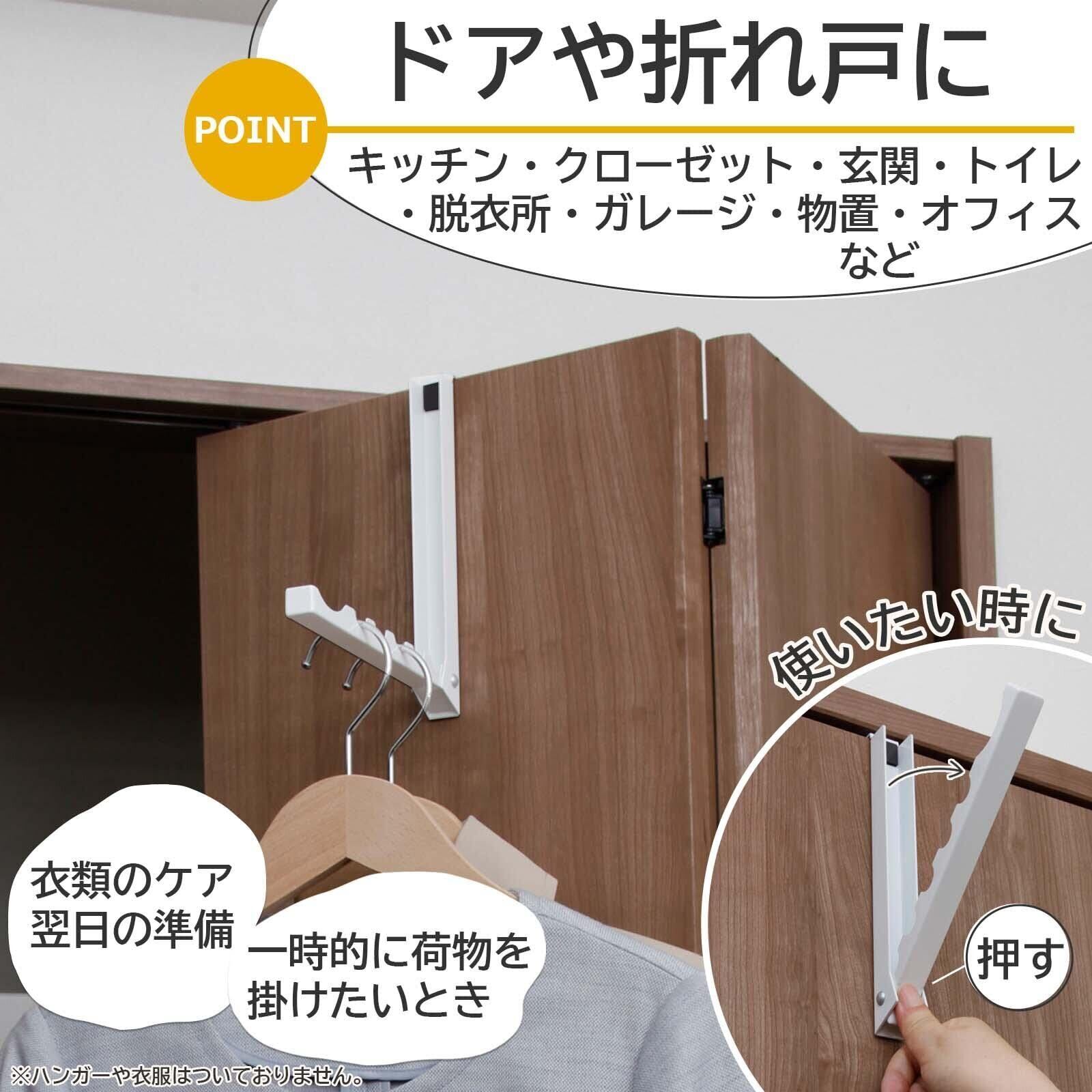 コモライフ 折り畳み式スリム ドアハンガー フック ドア掛け 収納 室内物干し 部屋干し 6個の凹凸 折りたたみ式 通気性 クッション付 傷つけにくい ズレにくい 衣類ケア 扉 玄関 折れ戸 キッチン オフィス 【サイズ:約幅2×奥行6.5×高20cm(収納時)】 【耐荷重:約6kg】 | hananoki